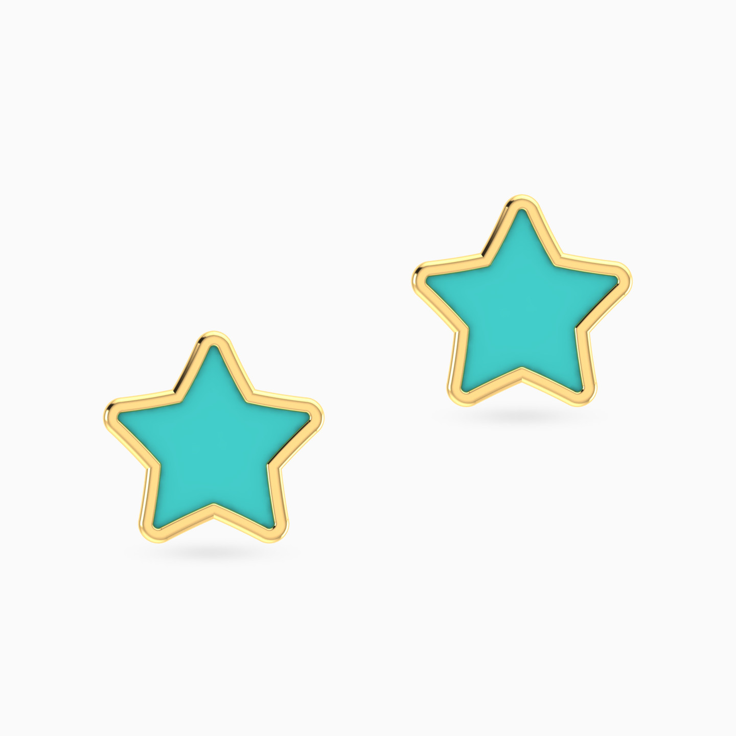 أقراط صغيرة ذهب نجمة عيار 18 قيراط مطلية بالمينا للأطفال