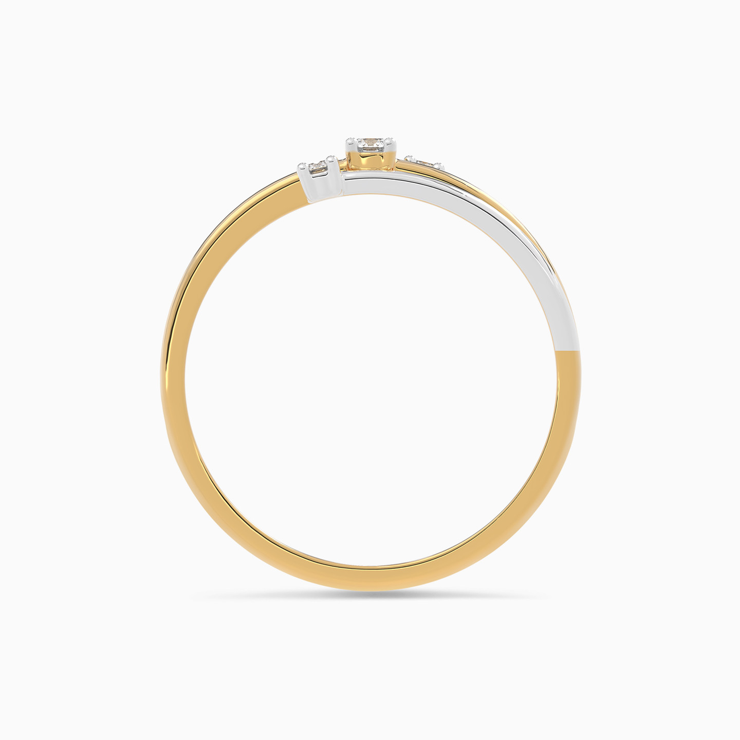 Introducing a chic and playful minimal statement ring from L'azurde Diamonds that’s a perfect blend of elegance and charm. Crafted from gleaming 18-karat yellow gold, a slender band delicately cradles a radiant brilliant-cut diamond at its center. As two thin bands approach from opposite directions, each culminating in its own dazzling diamond, this ring captures the essence of minimalism with a whimsical twist. Perfect for every day as well as special occasions.