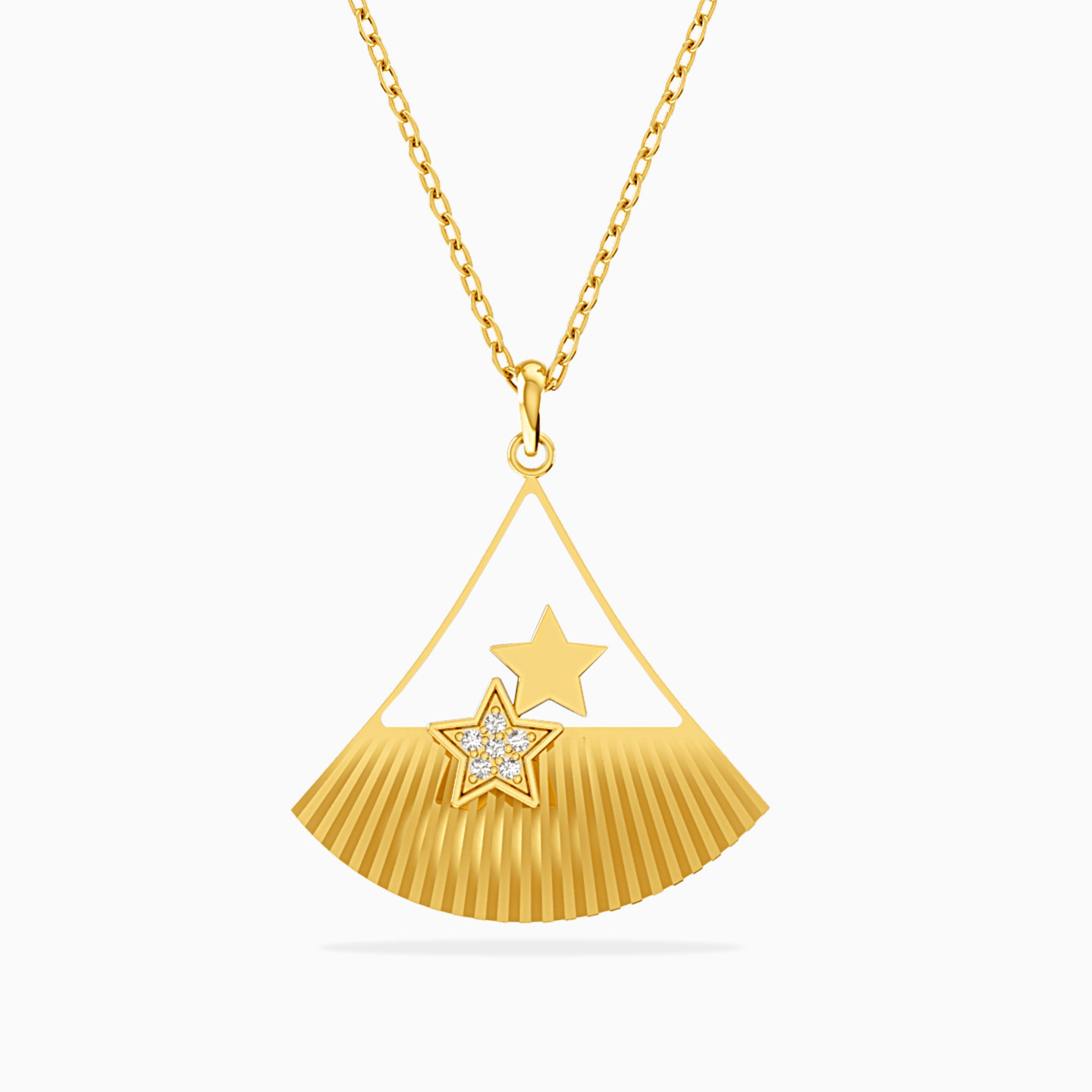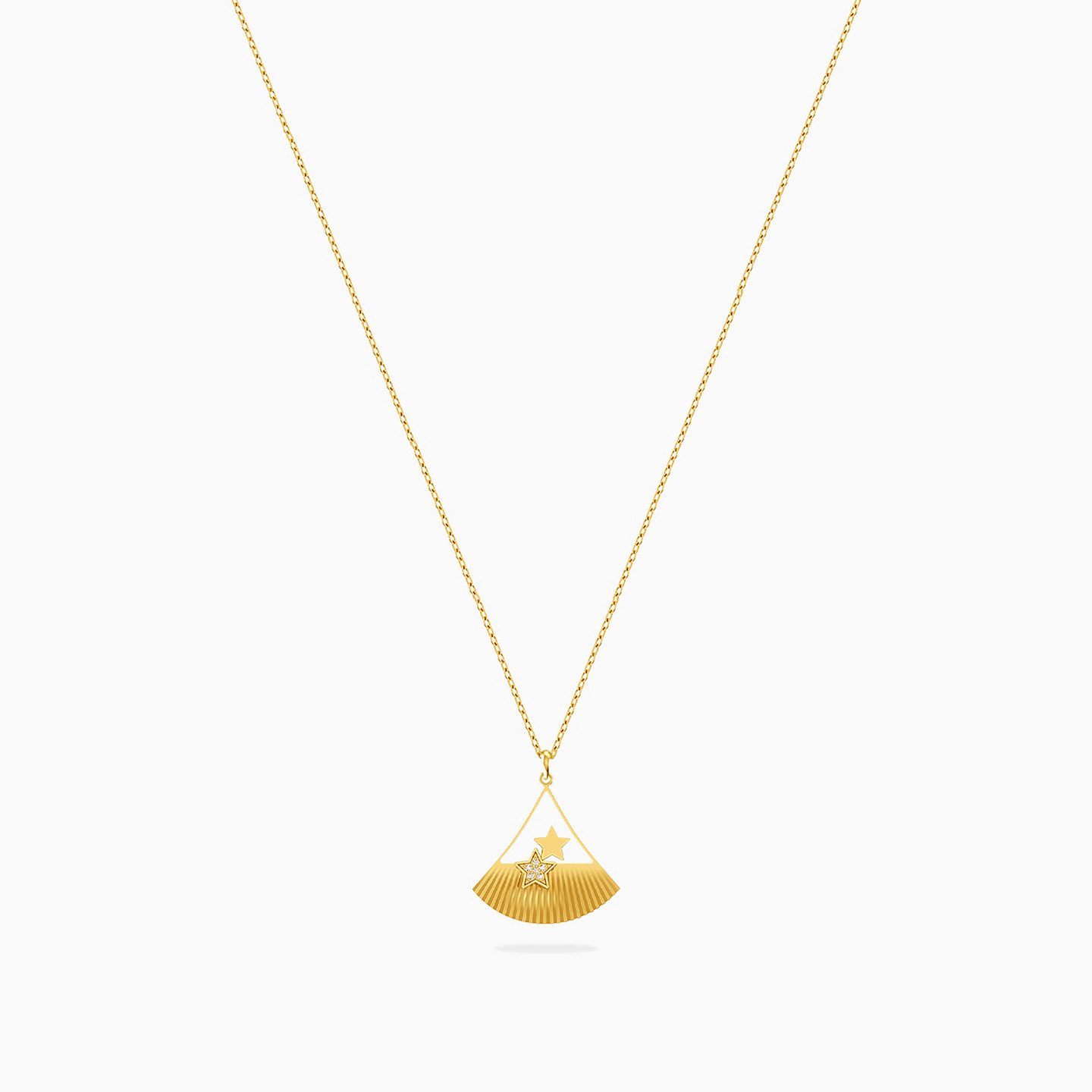 This piece reminds us of the beach. The shell textured pendant in this necklace from L'azurde Instyle is accented with star motifs and diamonds. Suspended from an 18-karat yellow gold chain, this necklace will work from AM to PM.