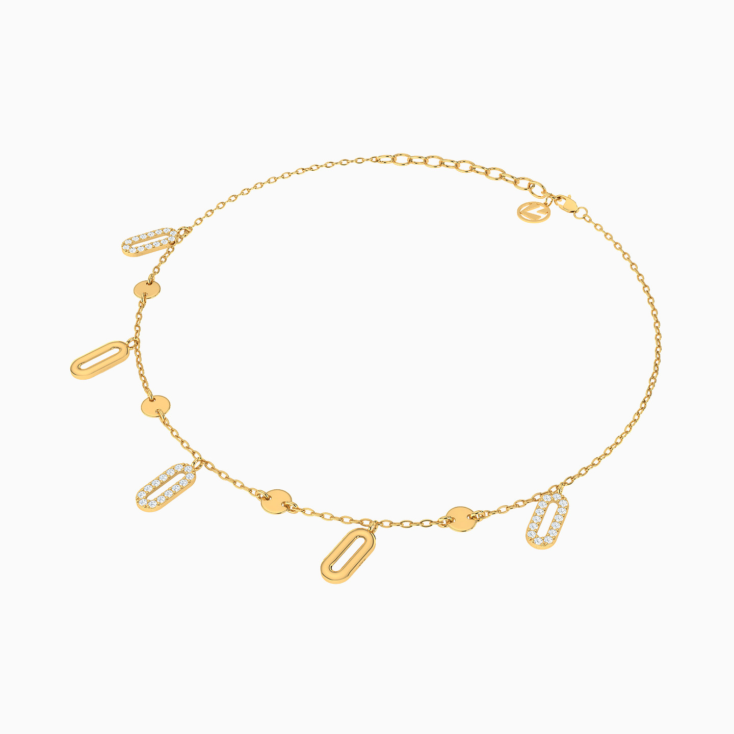 Petite is the new glamorous and this bracelet from L'azurde Gold is the way to go. Cast in 21-karat yellow gold, it features a slim chain that's accented with solid and zirconia studded oval motif charms. Adding a touch of tease to your wrist, this number will work beautifully from day to evening.