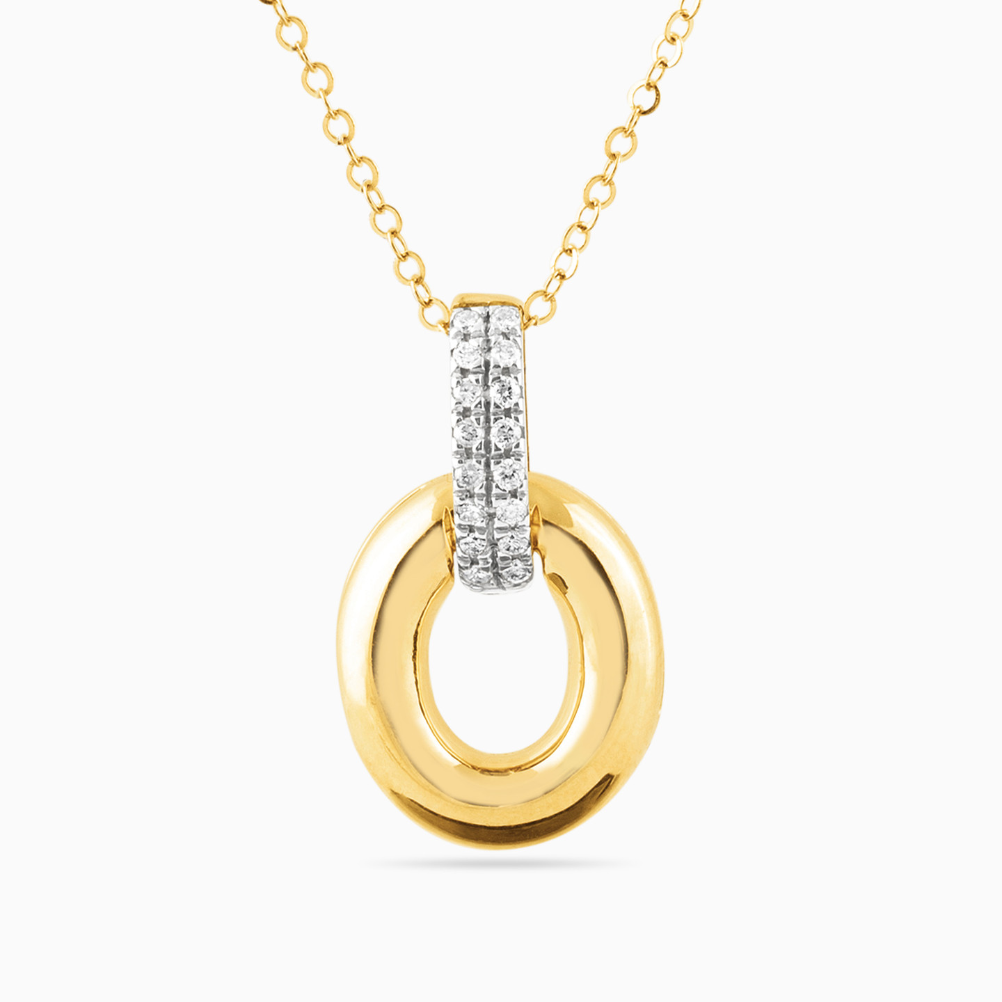 Showcasing easygoing elegance, this chic 18-karat yellow gold pendant necklace from L'azurde Diamonds is a must-have in your jewelry collection. This exquisite pendant is feminine and sophisticated with a shimmering solid gold circle, suspended from a 0.13-carat diamond-covered fixed bail. What a fitting addition to formal evening wear to ensure you make an impression.