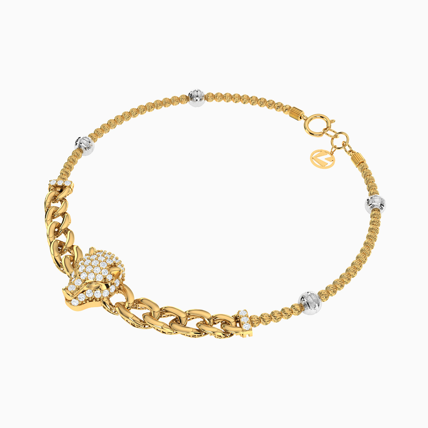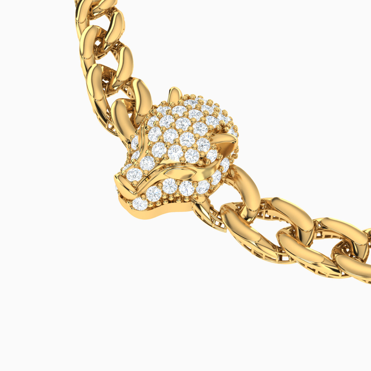 Show the world your fierce confidence and majestic beauty. This breathtaking 18-karat yellow and white gold bracelet from L’azurde Gold features an eye-catching cubic zirconia panther at the center of a brilliant chunky gold link chain. White gold stations and yellow gold beads lend additional beauty to the design. Wear this mesmerizing bracelet to enhance a casual denim outfit or elevate chic evening attire.