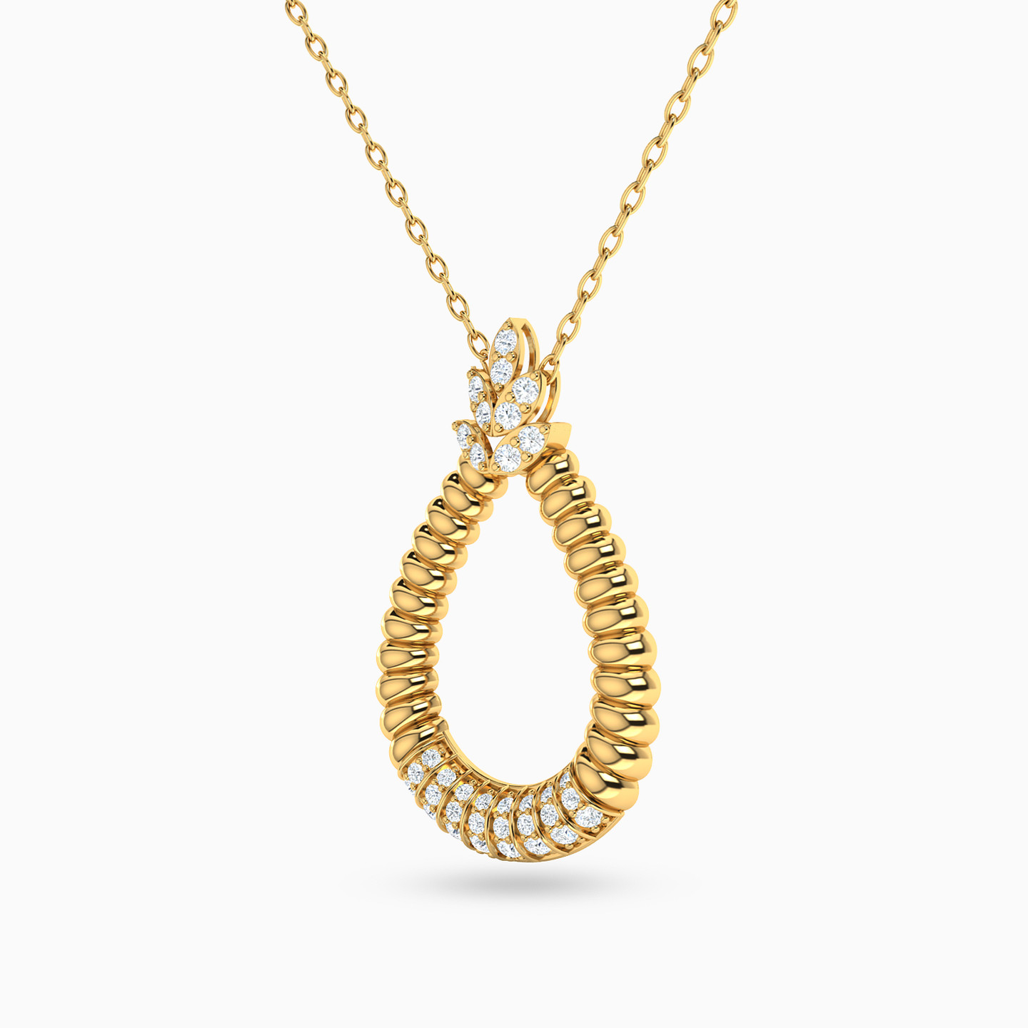 Shining through its distinctness, this necklace from L'azurde Instyle is a piece of admiration. The 18-karat yellow gold pendant designed in the shape of an open tear drop features textured detail all over and is further accented with petite zirconia stones to the top and bottom. Gracefully pegged on to a dainty chain, this number will make a wonderful choice with traditional or fusion outfits.
