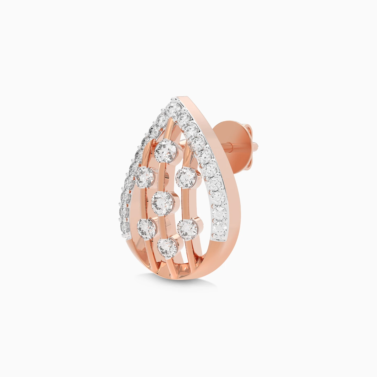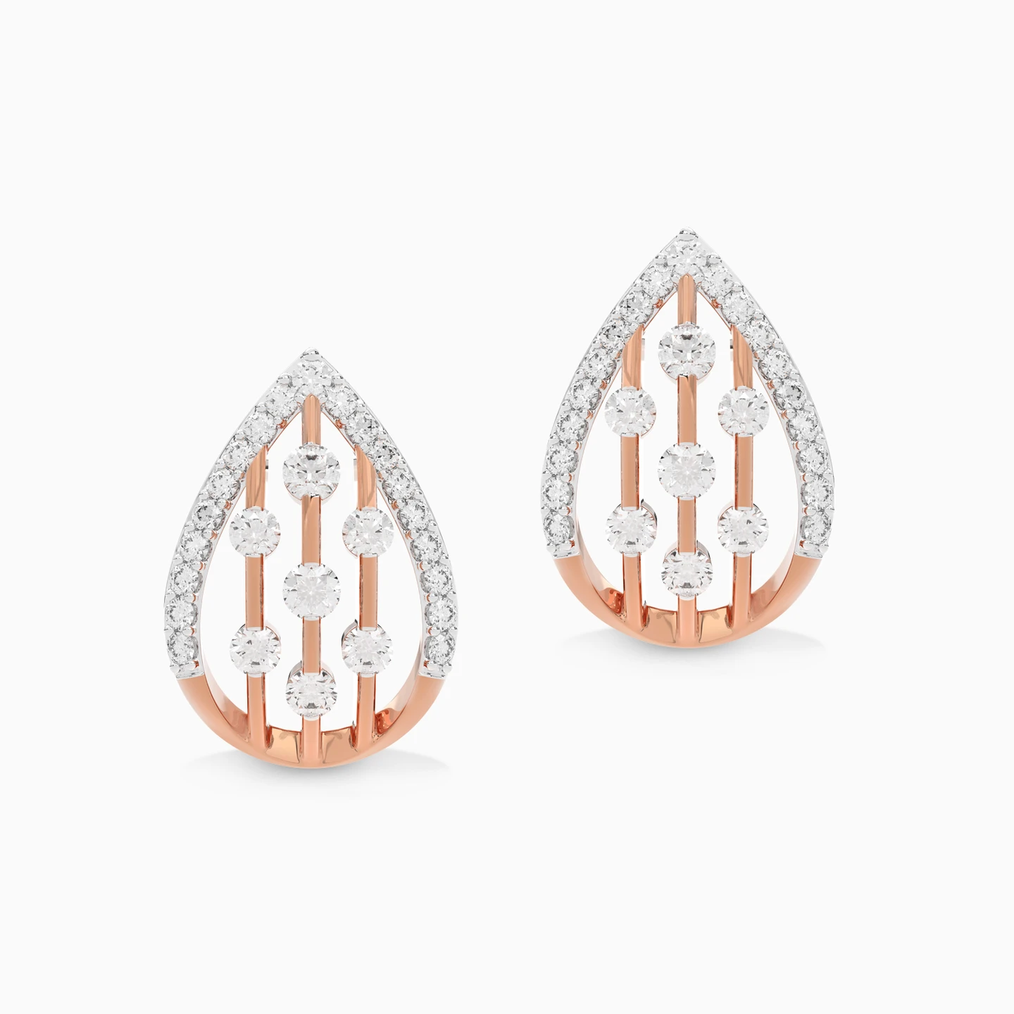 Elevate your look to luxury with this shiny piece from Lazurde Diamonds! Crafted in 18K rose gold, these earrings feature a pendant with a pear-shaped design, intricately filled with sparkling diamonds. The warm rose gold enhances the brightness of the diamonds, creating a spectacular display of luxury and sophistication. This elegant piece is the perfect accessory for elevating your style, making it ideal for special occasions or everyday elegance.