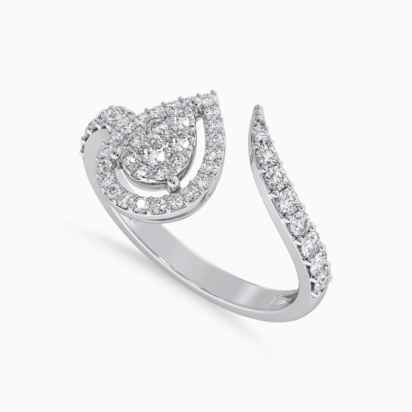 خاتم ذهب برأس مزدوجة شكل قطرة عيار 18 قيراط مزين بالألماس