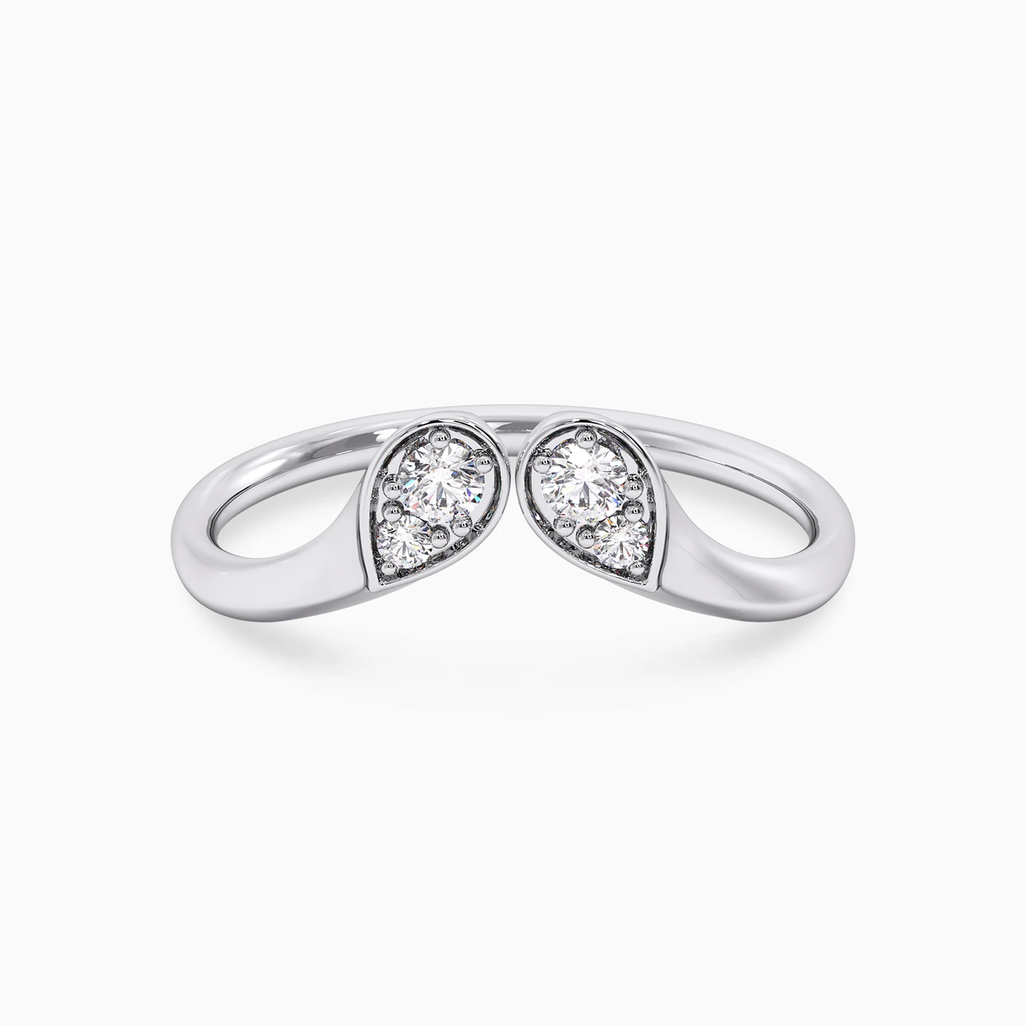 Elevate your look to luxury with this shiny piece from Lazurde Diamonds! This stunning 18K white gold two-headed ring features a sleek band adorned with two small pear-shaped designs, each filled with dazzling diamonds, placed in different directions at either end of the band. The intricate design and the brilliance of the diamonds create a captivating effect, making this ring a perfect blend of elegance and modern sophistication. Whether worn as a statement piece or layered with other rings, this timeless design is a true symbol of beauty and luxury.