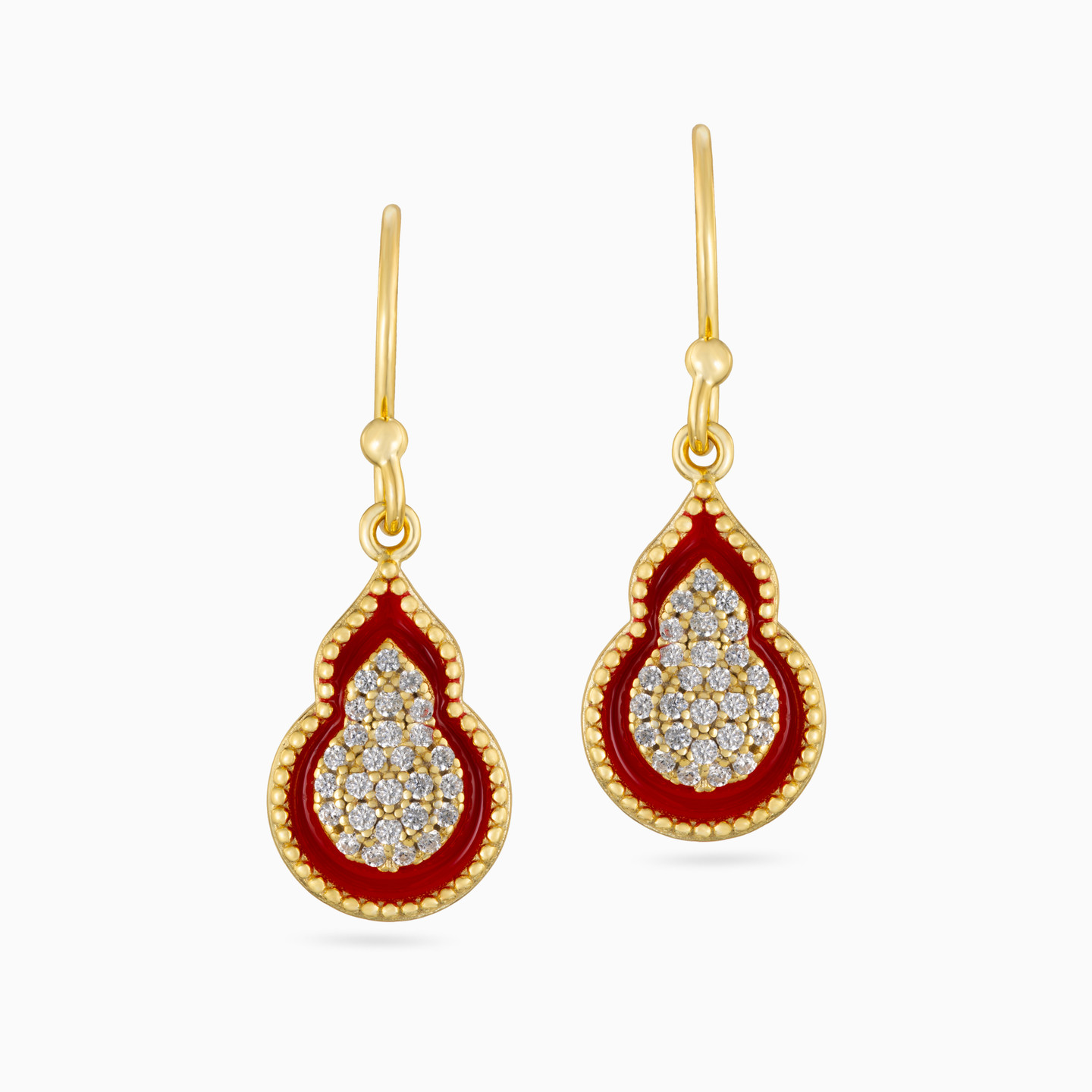 أقراط متدلية مطلية بالذهب كمثرى مزينة بحجر أحمر ومطلية بالمينا