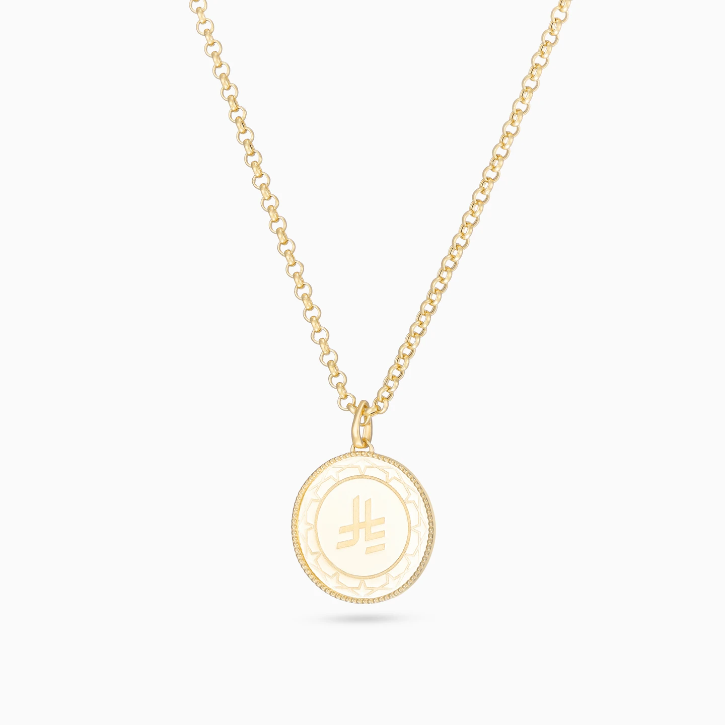 A symbol of value, worn with intention. This Lazurde Gold yellow gold pendant necklace features a polished round medallion engraved with the Riyal sign, framed by refined detailing that adds depth and presence. Designed to reflect confidence, prosperity, and personal pride, it carries meaning beyond style. A timeless yellow gold piece to mark achievements, offer as a thoughtful gift, and invest in beauty that holds its worth.