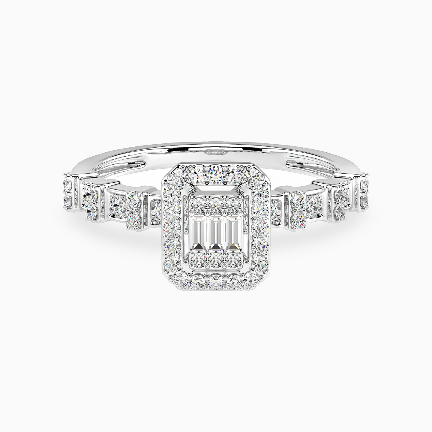 Sparkle and shine by wearing these gorgeous diamond twin rings from L'azurde Diamonds. Meticulously crafted in lustrous 18-karat white gold, this captivating dual band ring is studded with 0.42-carats of diamonds, prong-set in square and rectangular shapes. The eye-catching centerpiece is raised for added brilliance and features a mix of round and baguette shaped diamonds. A striking complement to your occasion wear, these stunning rings bring sophistication to new levels.