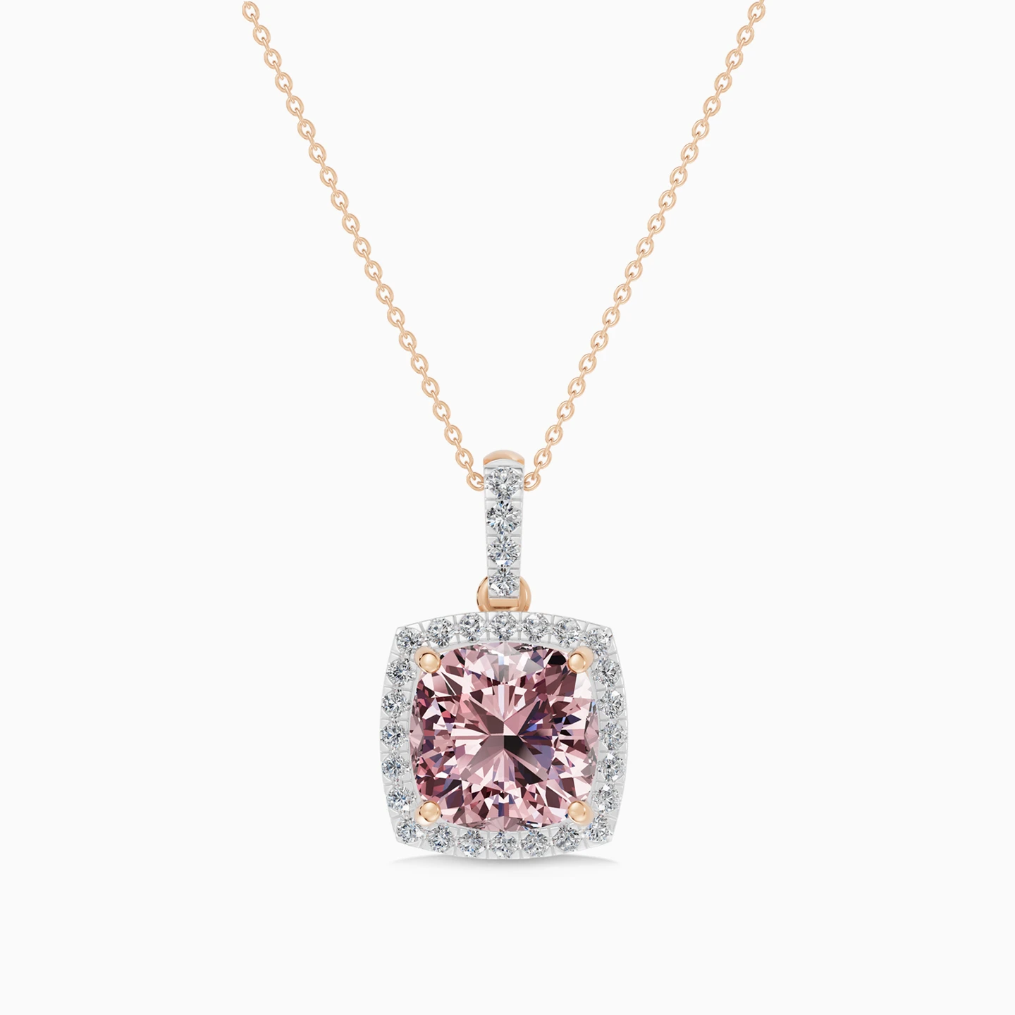 Soft warmth meets refined brilliance. This Lazurde Diamonds pendant necklace is centered with a cushion-shaped peach morganite, framed by a halo of brilliant-cut diamonds that amplify its gentle glow and create a graceful focal point along the chain. Designed for women drawn to understated romance and confident elegance, it’s a timeless piece that elevates everyday moments and stands as a lasting investment in personal style.