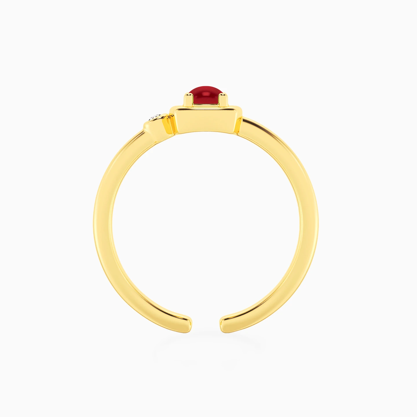 خاتم مطلي بالذهب شكل مربع مزين بألماس مختبرات وحجر أحمر