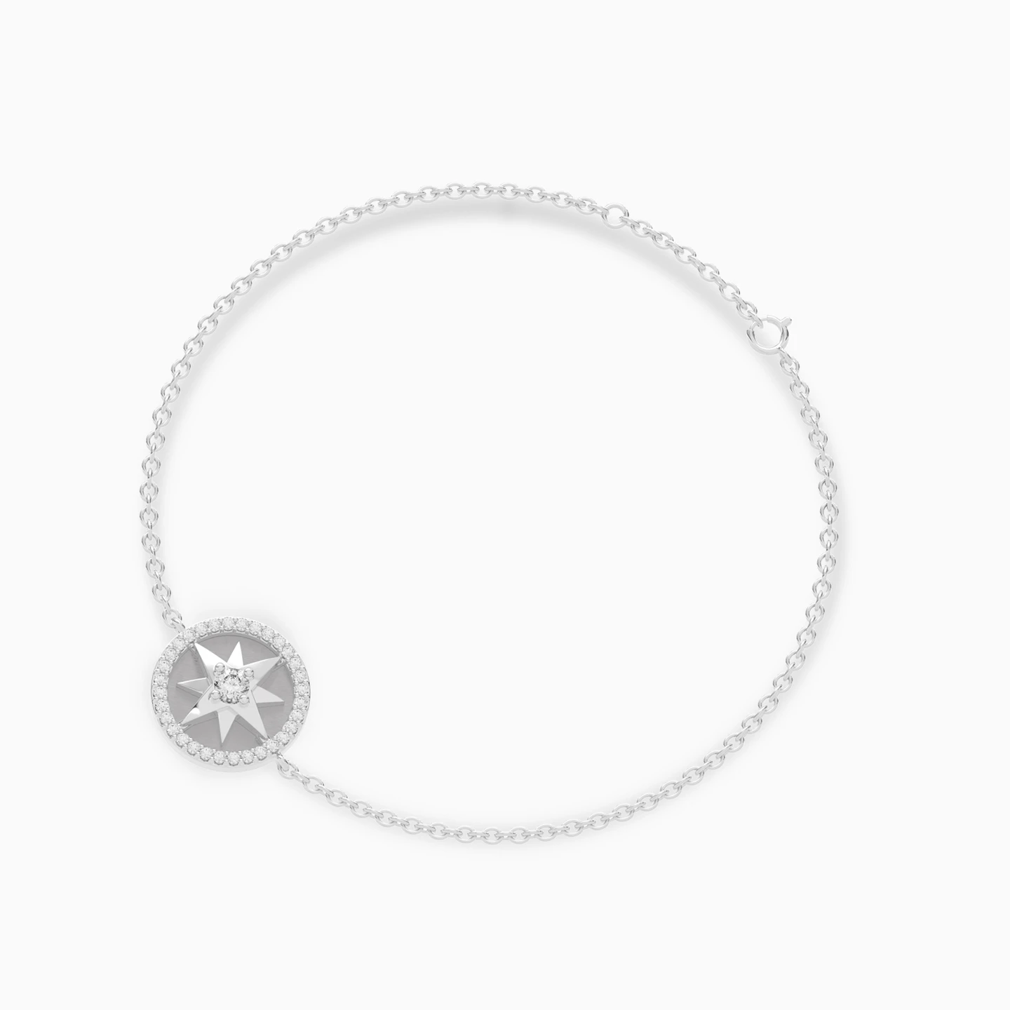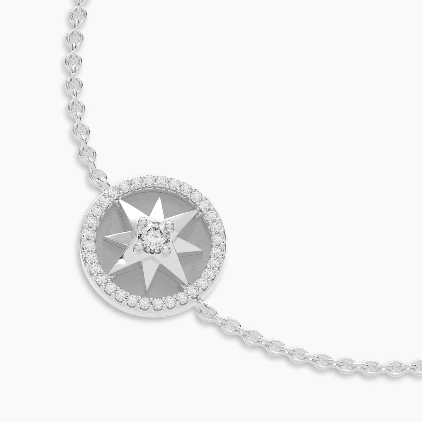 Elevate your look to luxury with this shiny piece from Lazurde Diamonds! This exquisite 18K white gold chain bracelet features a dazzling round pendant framed with shimmering diamonds. At its center, a delicate star-shaped design highlights a brilliant diamond, capturing the magic of celestial beauty. With its refined elegance and timeless charm, this bracelet is the perfect statement piece, whether worn alone or layered, adding a touch of brilliance to any look.