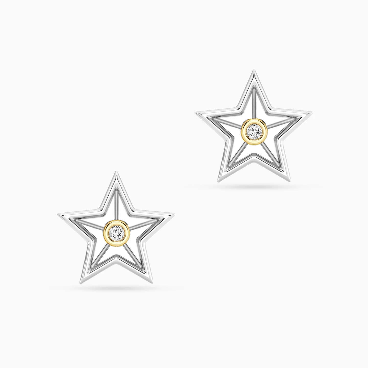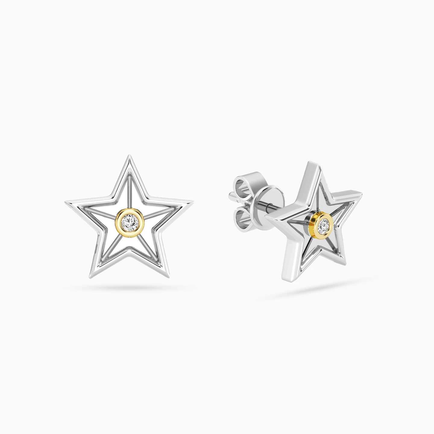 Discover affordable glamour and timeless style with this piece from Waves! These sterling silver stud earrings dazzle with playful elegance, featuring a modern star shape with a delicate touch of gold and a brilliant lab-grown diamond shining at the center for a captivating celestial glow. Perfect for those who adore unique designs and a hint of sparkle, they’re a delightful way to elevate everyday looks or special moments.