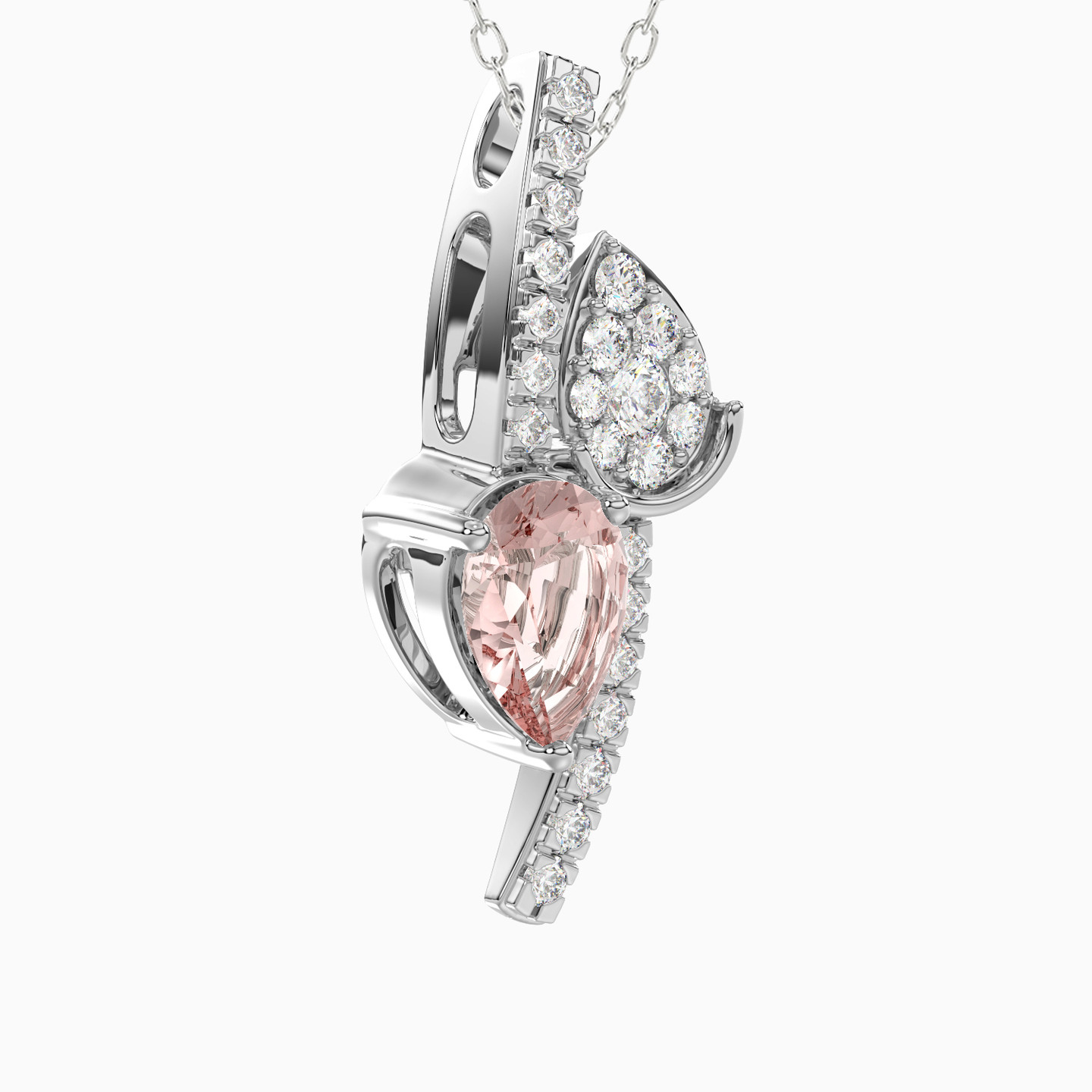 Elevate your look to luxury with this shiny piece from Lazurde Diamonds! This exquisite 18K white gold necklace features a delicate pendant with two tulip-shaped designs, each gracefully crafted with a pear-shaped head—one adorned with dazzling diamonds and the other with a soft rose-colored stone. The elegant contrast between the shimmering diamonds and the romantic pink hue creates a harmonious and refined aesthetic. Symbolizing beauty and grace, this necklace is the perfect accessory to add a touch of sophistication to any look, whether for everyday wear or a special occasion.