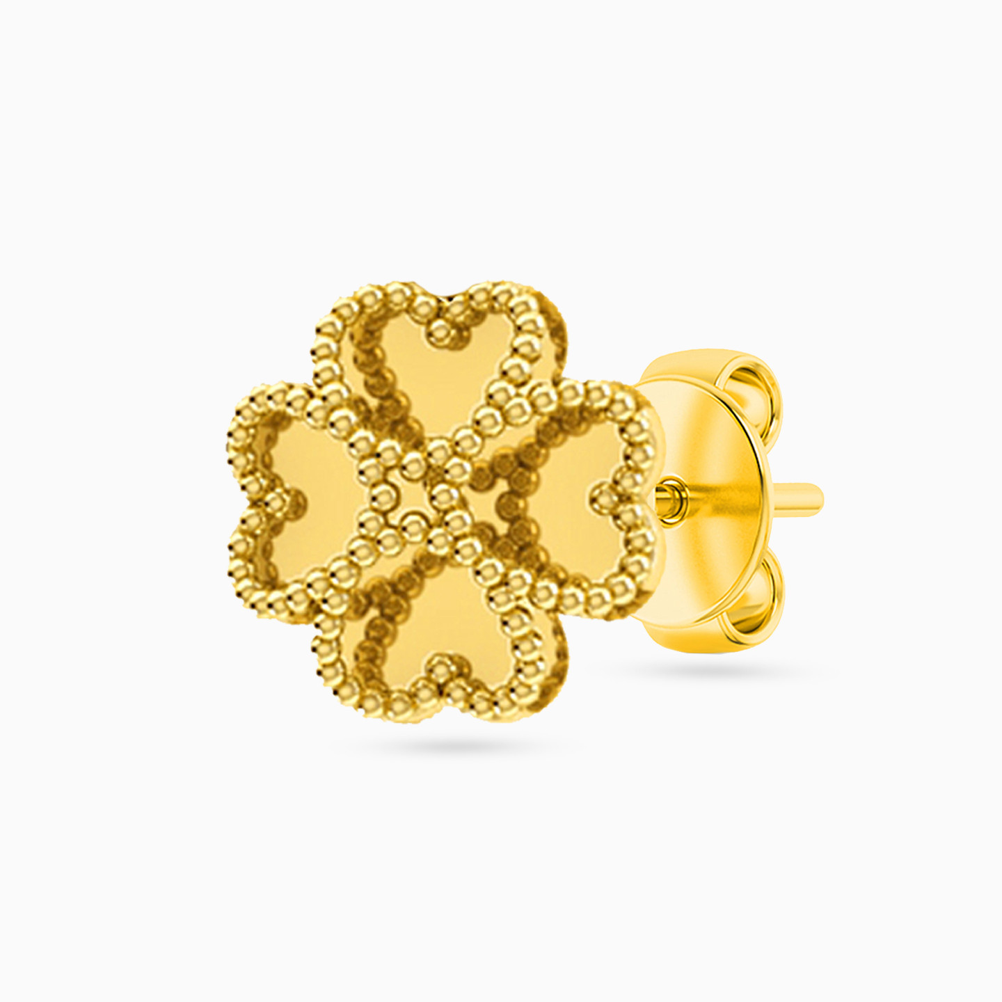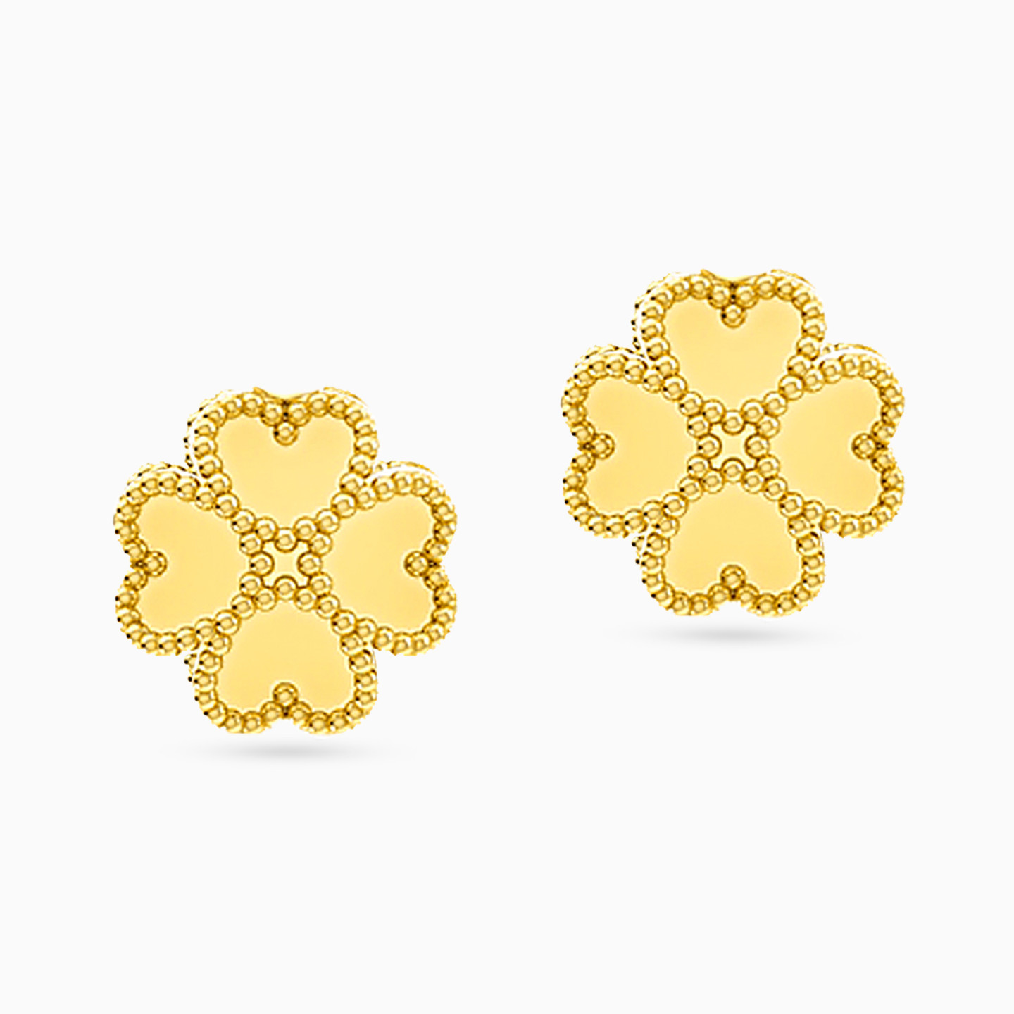 The textured bright look of these ear studs from Miss L’ is nothing less than captivating. The sparkling 18-karat yellow gold catches light to beautifully reflect its shine. Make these four-leaf clover shaped ear studs a part of your everyday wear.