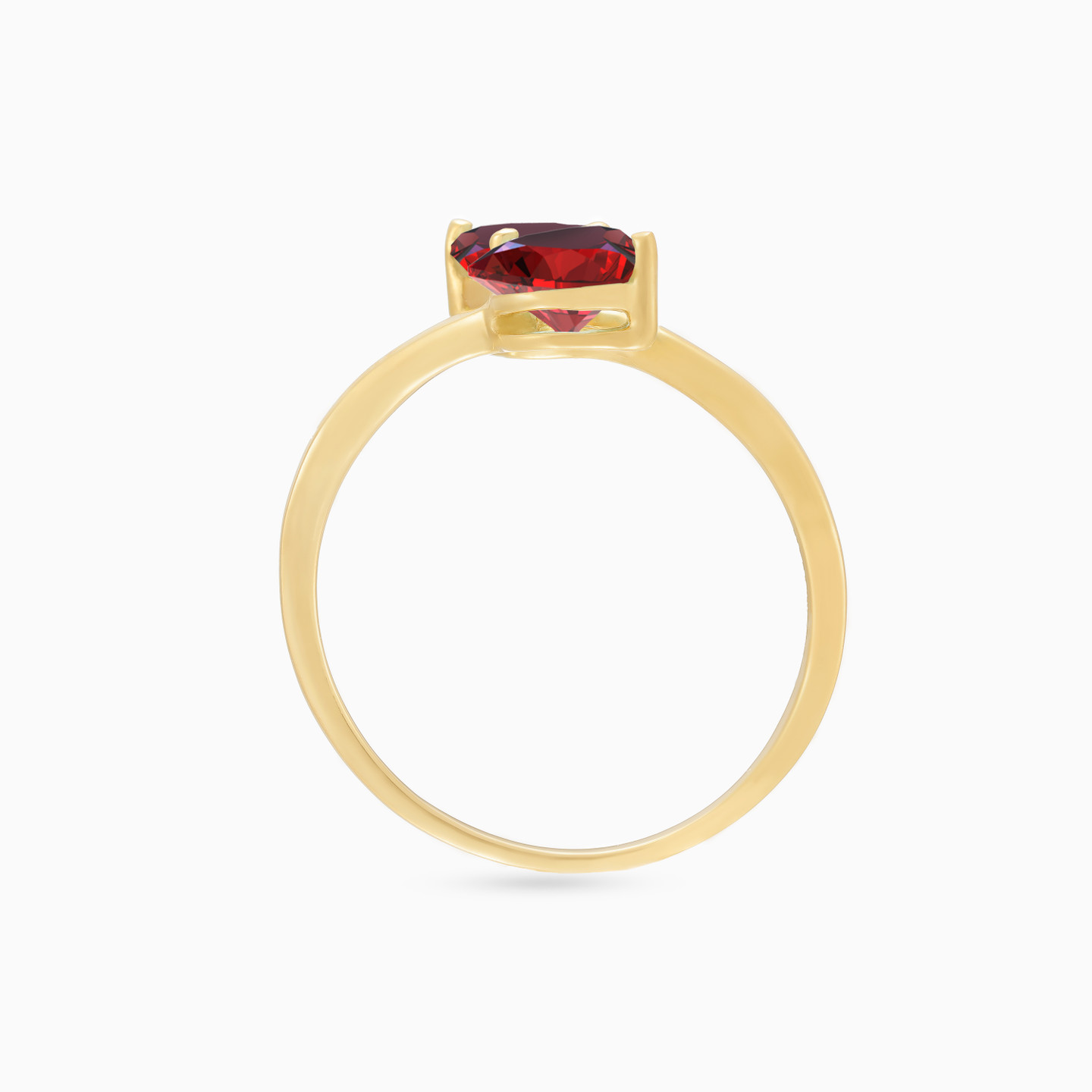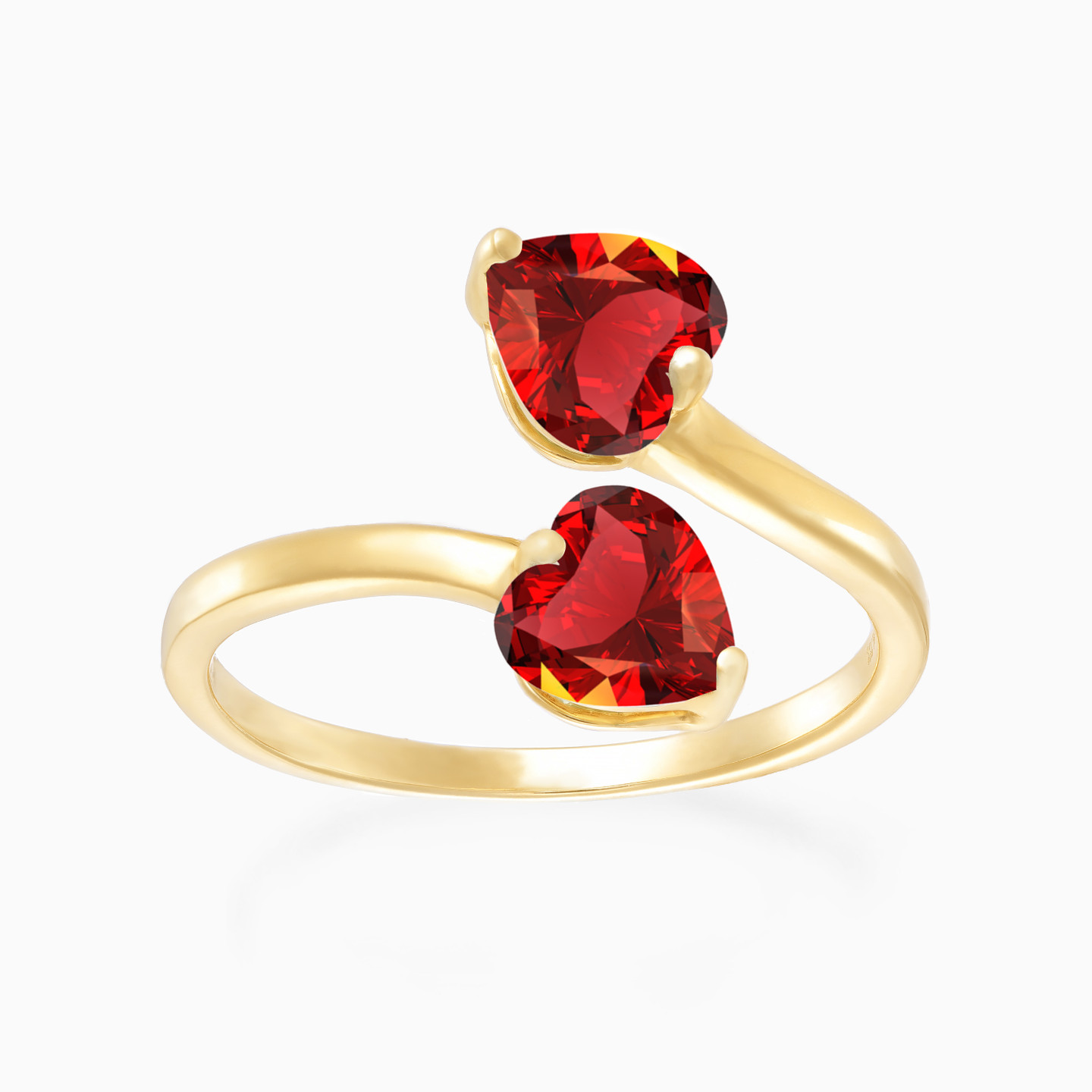 Two hearts meet in a gentle, expressive balance. This open bypass ring features a heart-shaped red stone on each end, set in a warm yellow gold tone that feels bold yet intimate. Designed to reflect confidence and emotional clarity, it makes a striking statement worn solo or stacked. A thoughtful gift that speaks of connection, passion, and personal style.