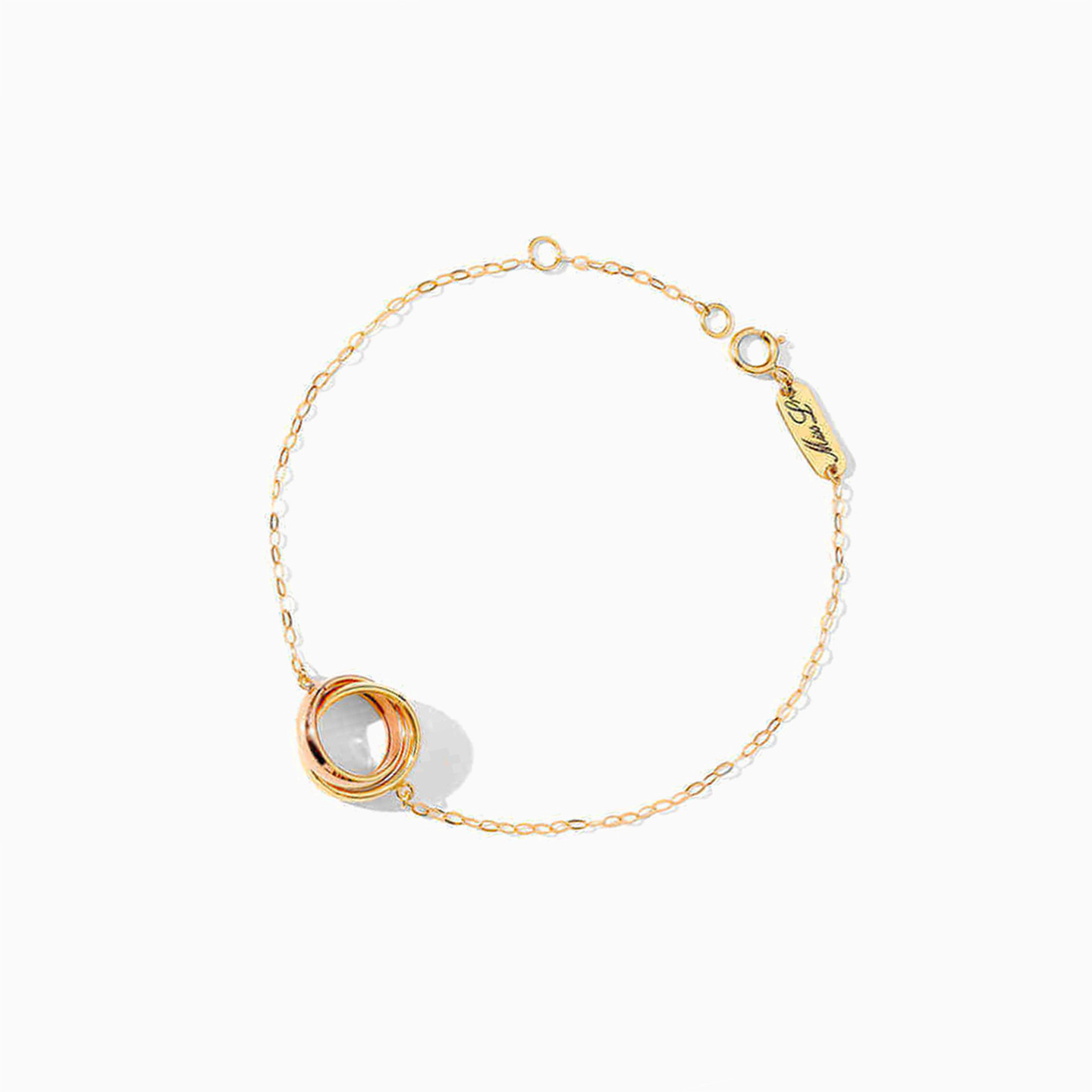 Simplicity shines through this petite bracelet from Miss L’. We love the yellow and rose gold interlocked circles that adorn the center as the delicate chain sits gracefully on your wrist. We think this piece will pair beautifully with formal suits and flowy dresses be it workday or weekend.