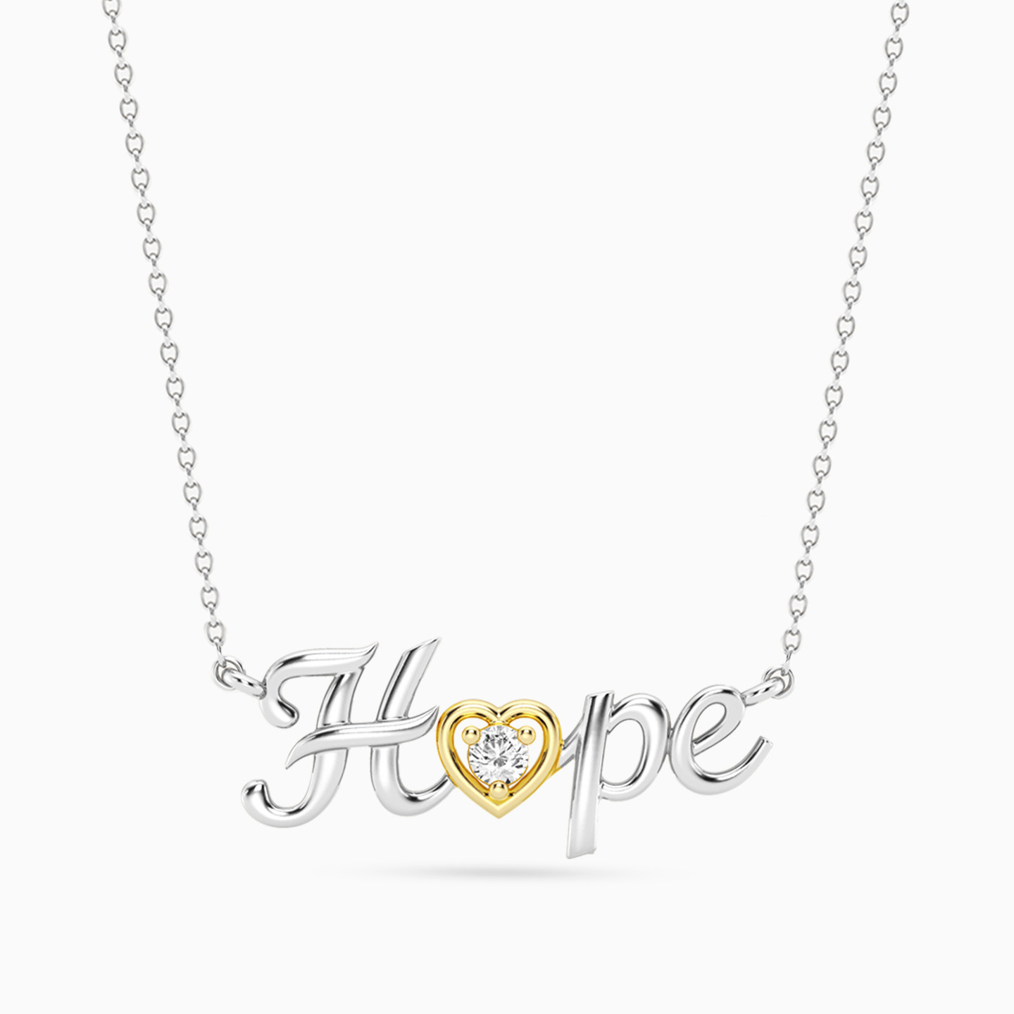 Discover affordable glamour and timeless style with this piece from Waves! This sterling silver necklace shines with a delicate chain and a graceful “Hope” motif, highlighted by a charming gold-plated heart set with a brilliant lab-grown diamond at its center. A symbol of optimism and beauty, it’s the perfect piece to inspire positivity and add a touch of meaningful sparkle to your everyday style or special moments.