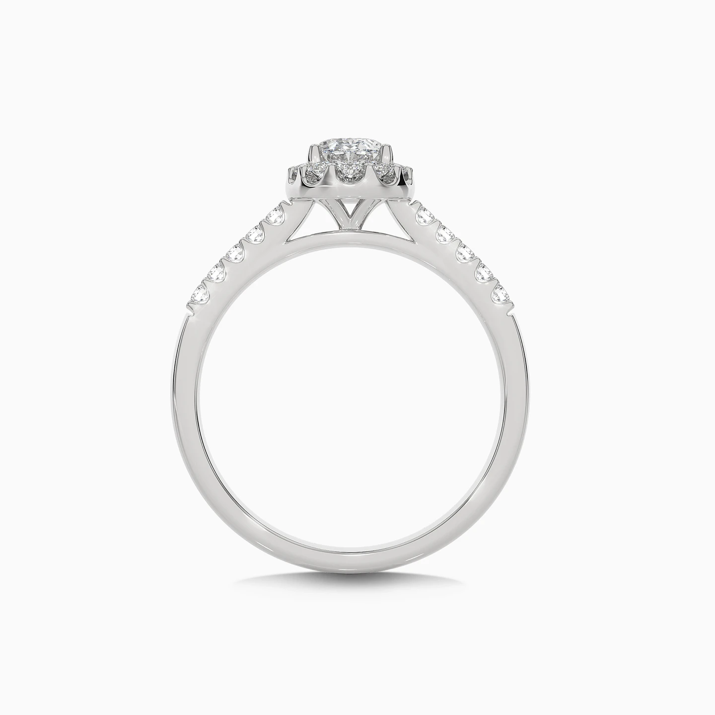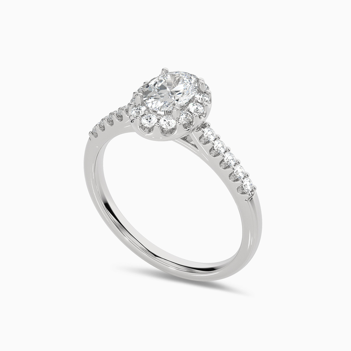 Add irresistible sparkle and shine to your everyday wardrobe by wearing this mesmerizing diamond ring from L'azurde. Beautifully crafted in lustrous 18-karat white gold, this elegant ring features an oval cut lab grown diamond at the center, framed in a diamond halo. Pair this magnificent piece with the matching diamond pendant necklace and stud earrings for a look that shines.