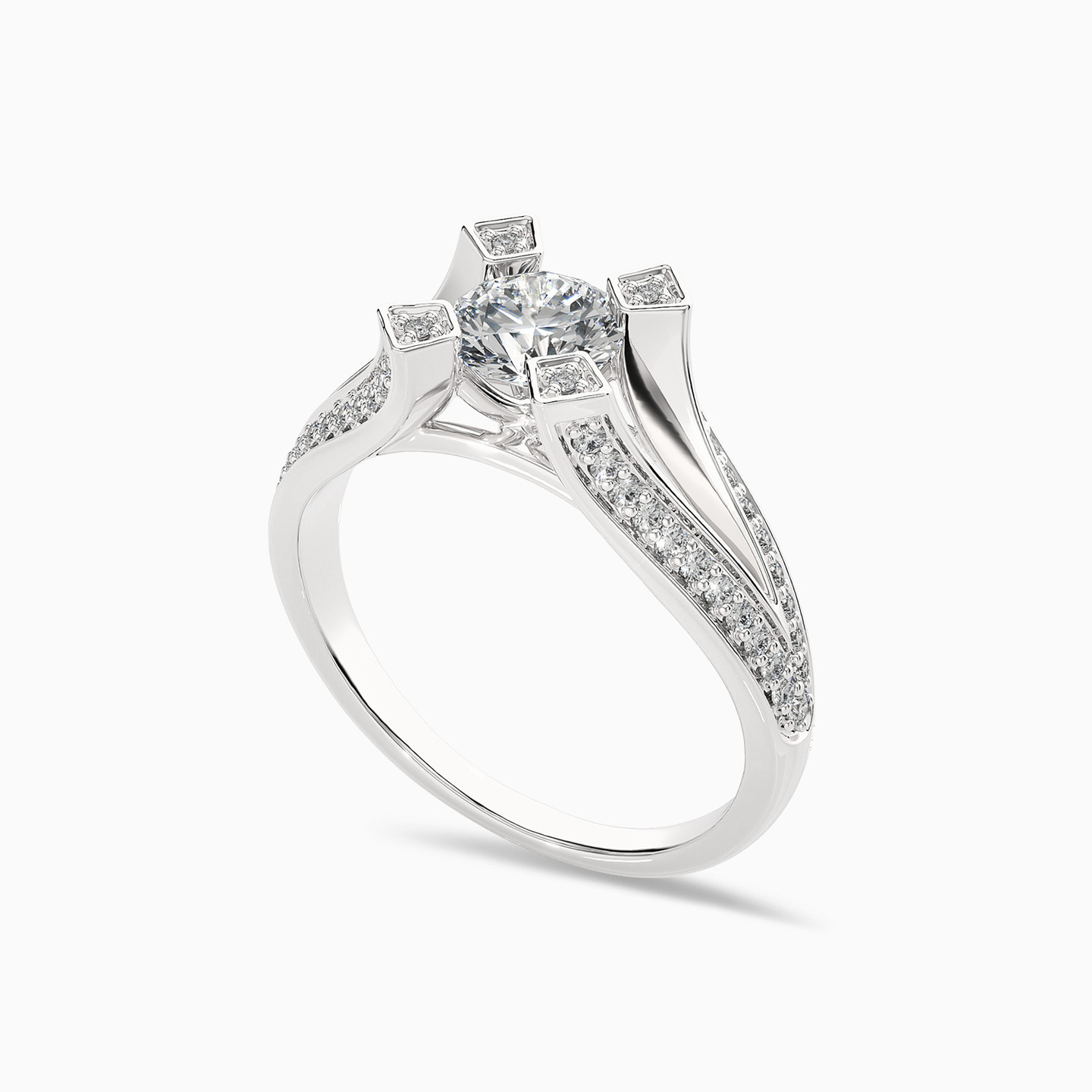Add a touch of feminine allure to your attire by slipping this sophisticated ring from L'azurde on your finger. Fashioned in 18-karat white gold, this gorgeous ring showcases a Lab Grown Diamond at the center of a split shank diamond-dotted band with exquisitely detailed prongs. Whether you want to brighten up your office outfits or elevate your favorite tee and jean jacket, this gorgeous Lab Grown Diamond ring is the perfect choice.