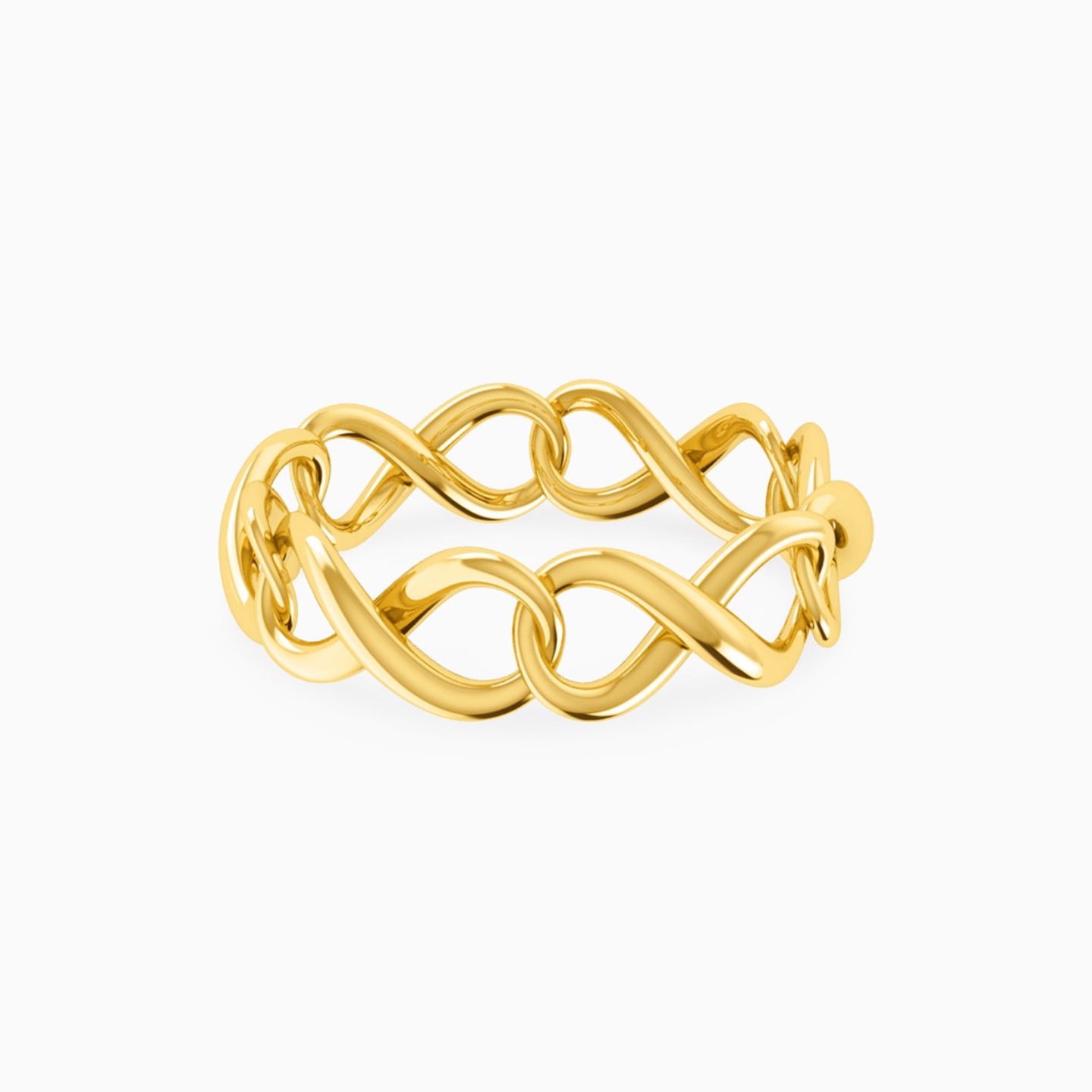 Infinity raises its bar with this stunning piece from Miss L’. Decked with infinity motifs interlocked into one another in lustrous 18-karat yellow gold, this ring will work its way into your AM to PM looks. Keep this as your centerpiece or complement it with a matching bracelet.