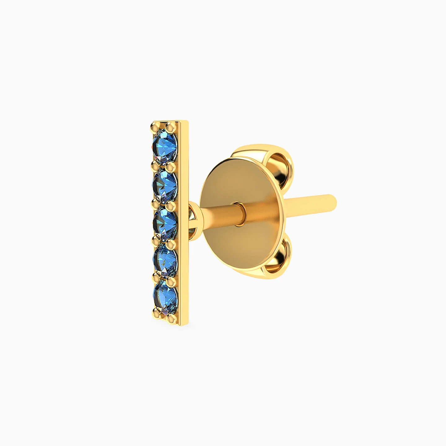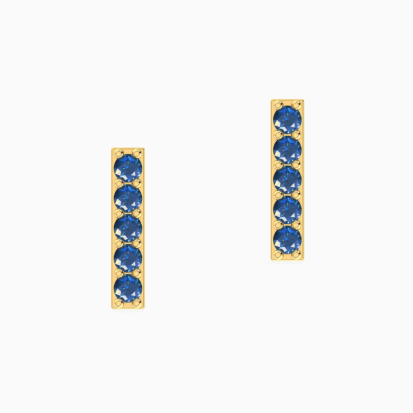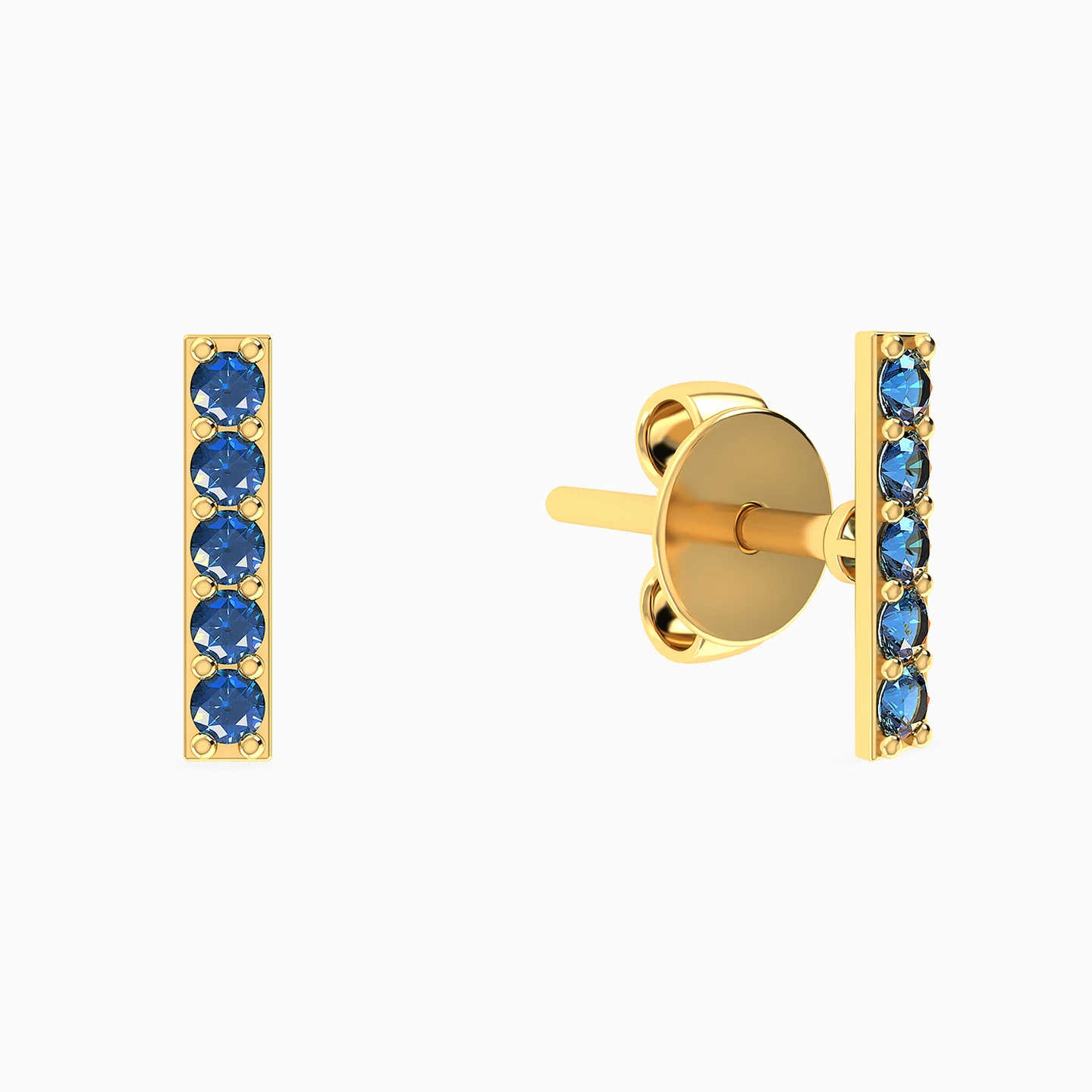 A minimal beauty from L'azurde Instyle to elevate your everyday dressing game! Crafted from 18-karat yellow gold, these stud earrings feature a sleek vertical bar adorned with an array of round-shaped colored stones set on prongs. Pair these sophisticated earrings with a chic updo and a sleek dress to let their dazzling colors and sparkle make a statement.