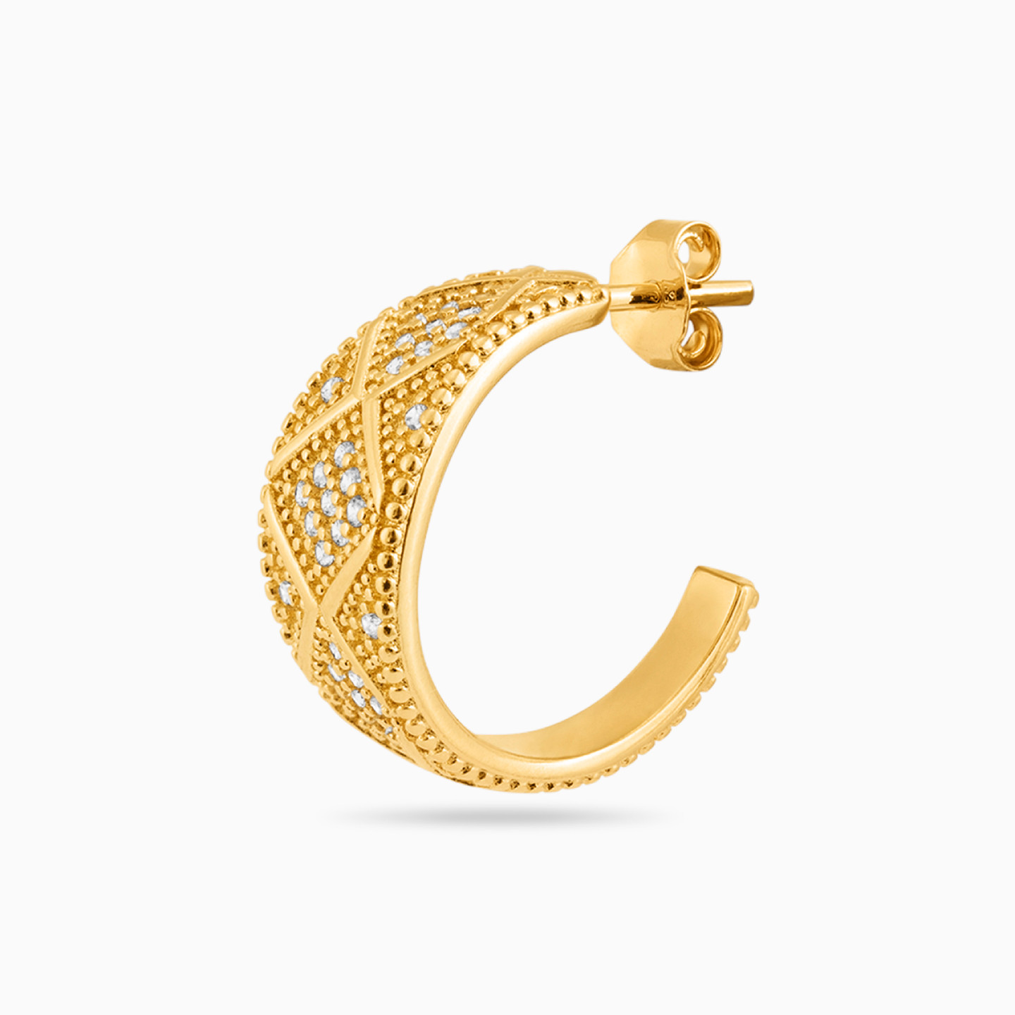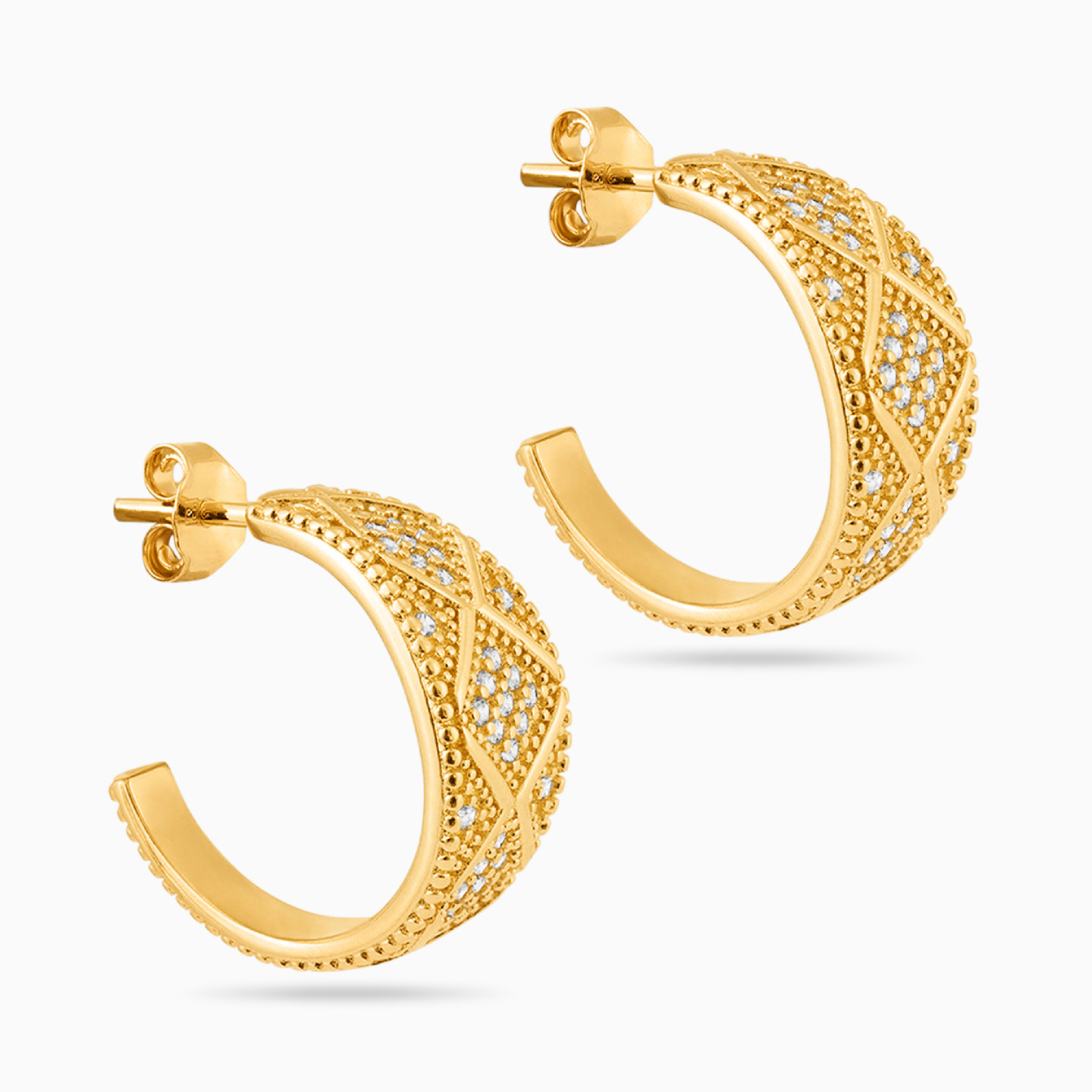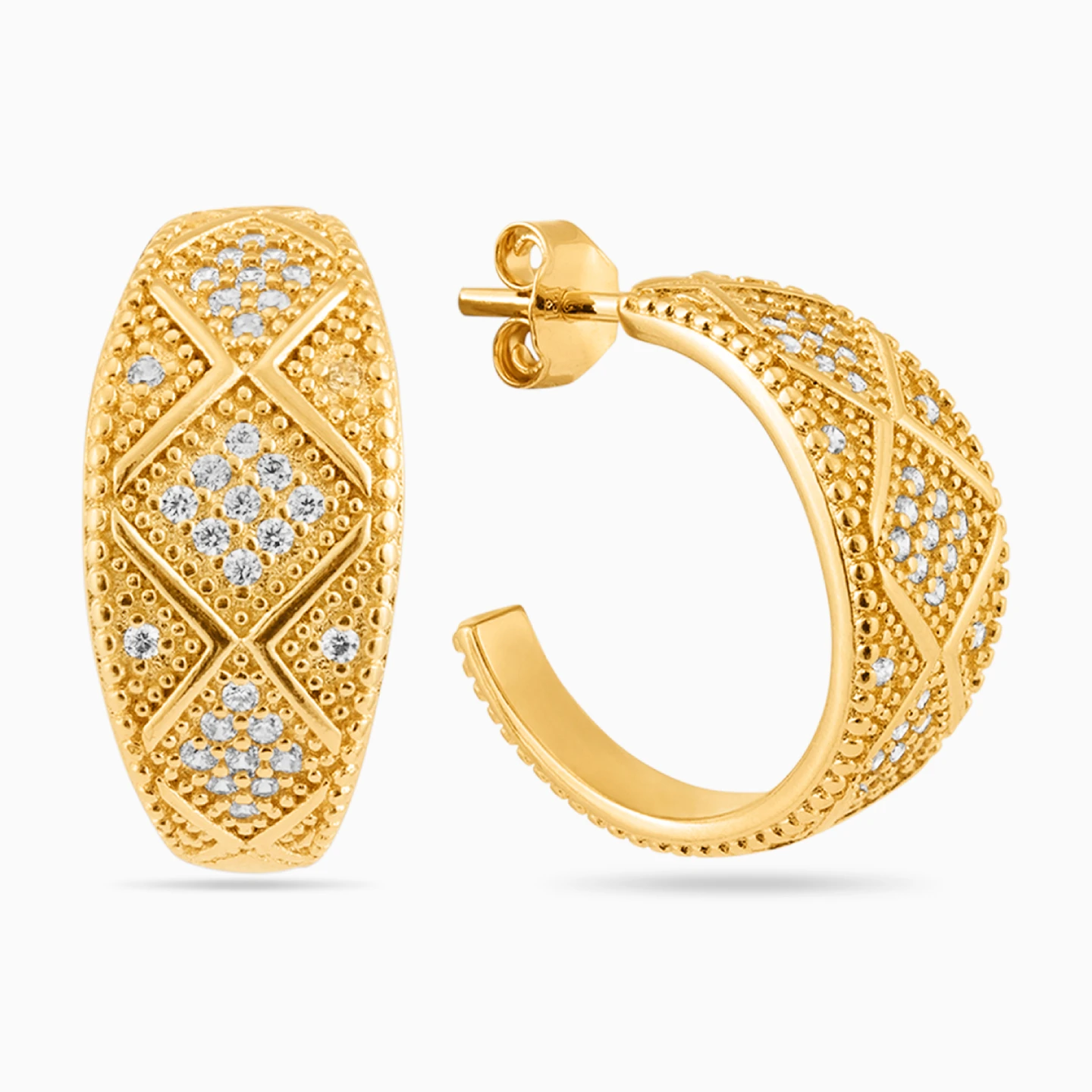 Broad Cubic Zirconia Gold Plated Hoop Earrings