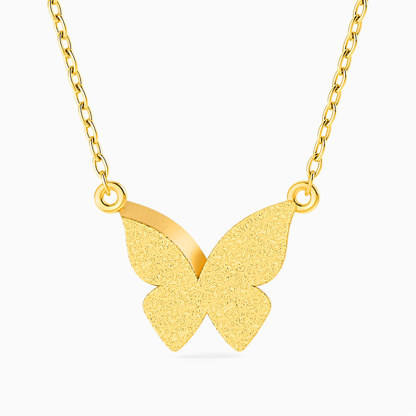 All that glitters is gold, especially when it comes to this necklace from Miss L’. Featuring a glitter encrusted butterfly pendant in 18-karat yellow gold, pegged to a dainty chain, this necklace will effortlessly enhance your work to weekend look. Wear it solo to let it truly shine.