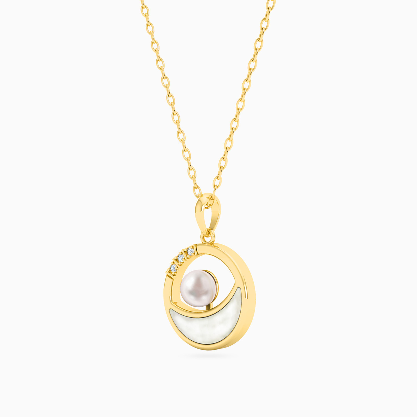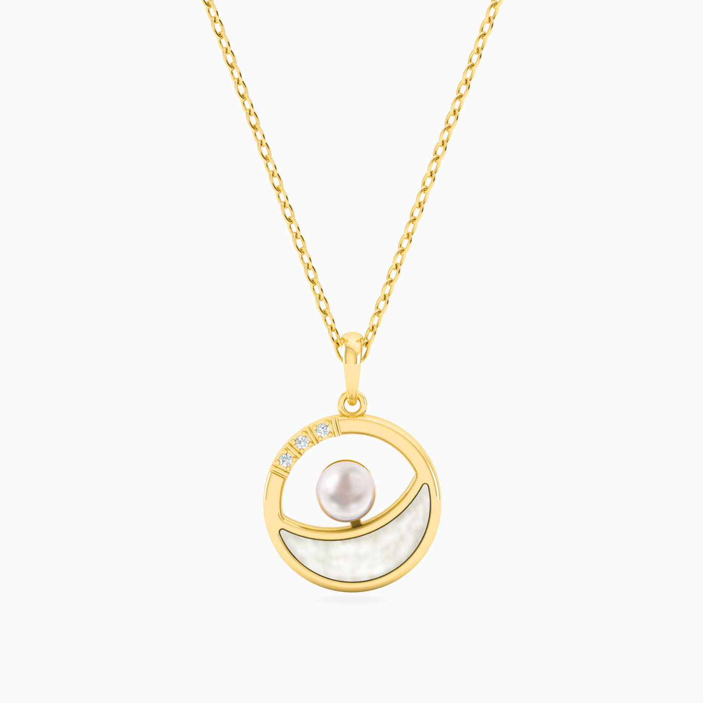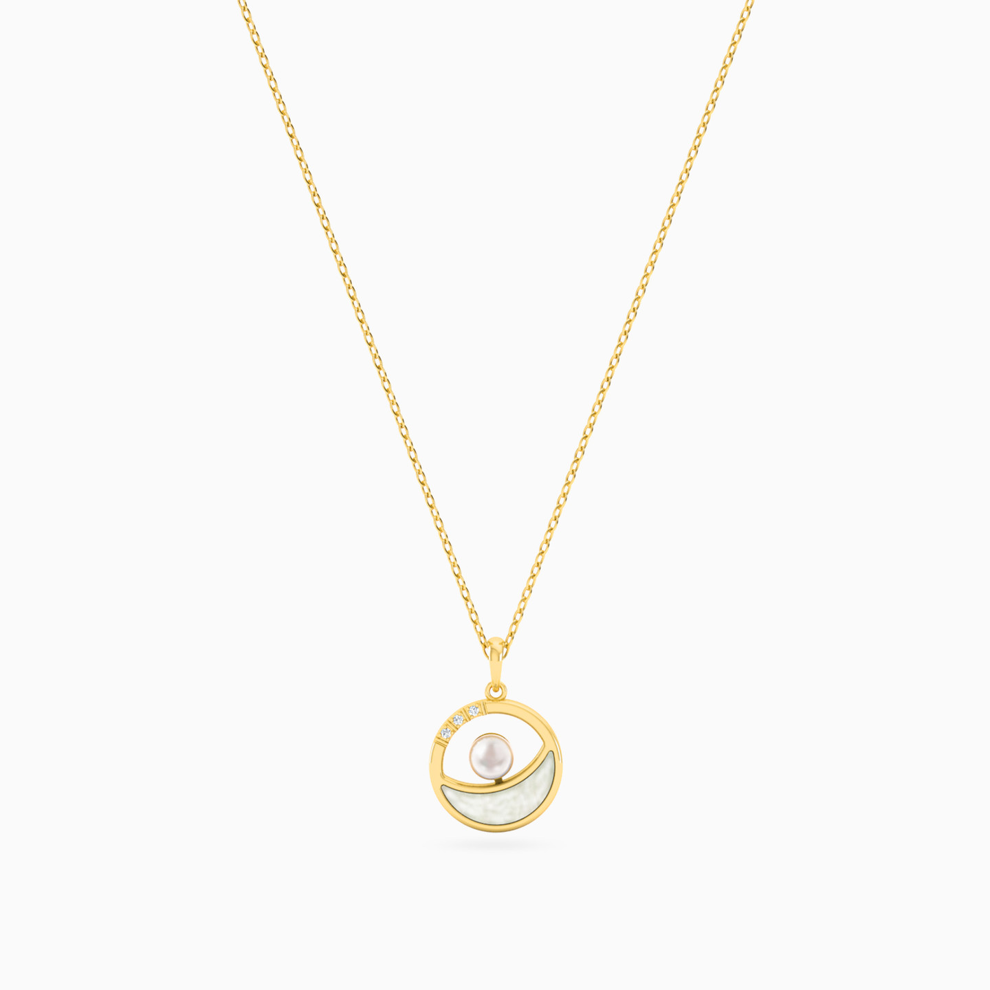 Bringing together a pearly appeal, this necklace from L'azurde Instyle is designed with a mother of pearl accent and a round milky white pearl. Suspended from an 18-karat yellow gold chain, this piece also features petite diamonds and will make the perfect addition to your evening outfits.