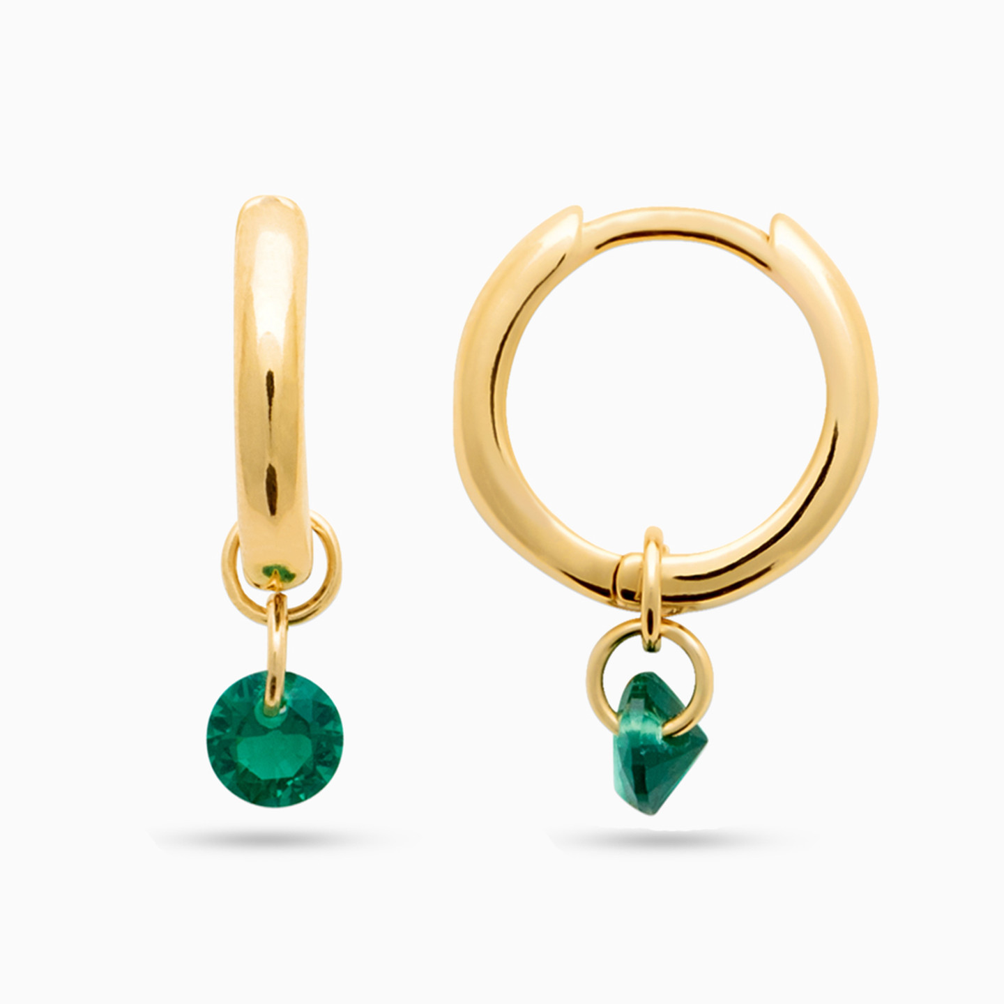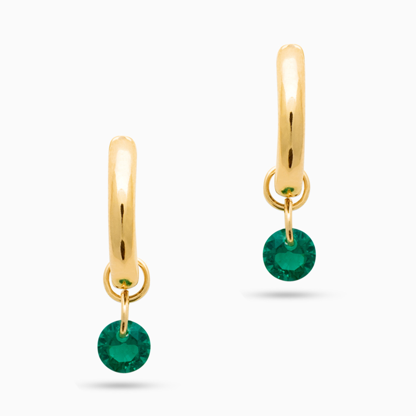 Circle Green Stones Gold Plated Hoop Earrings