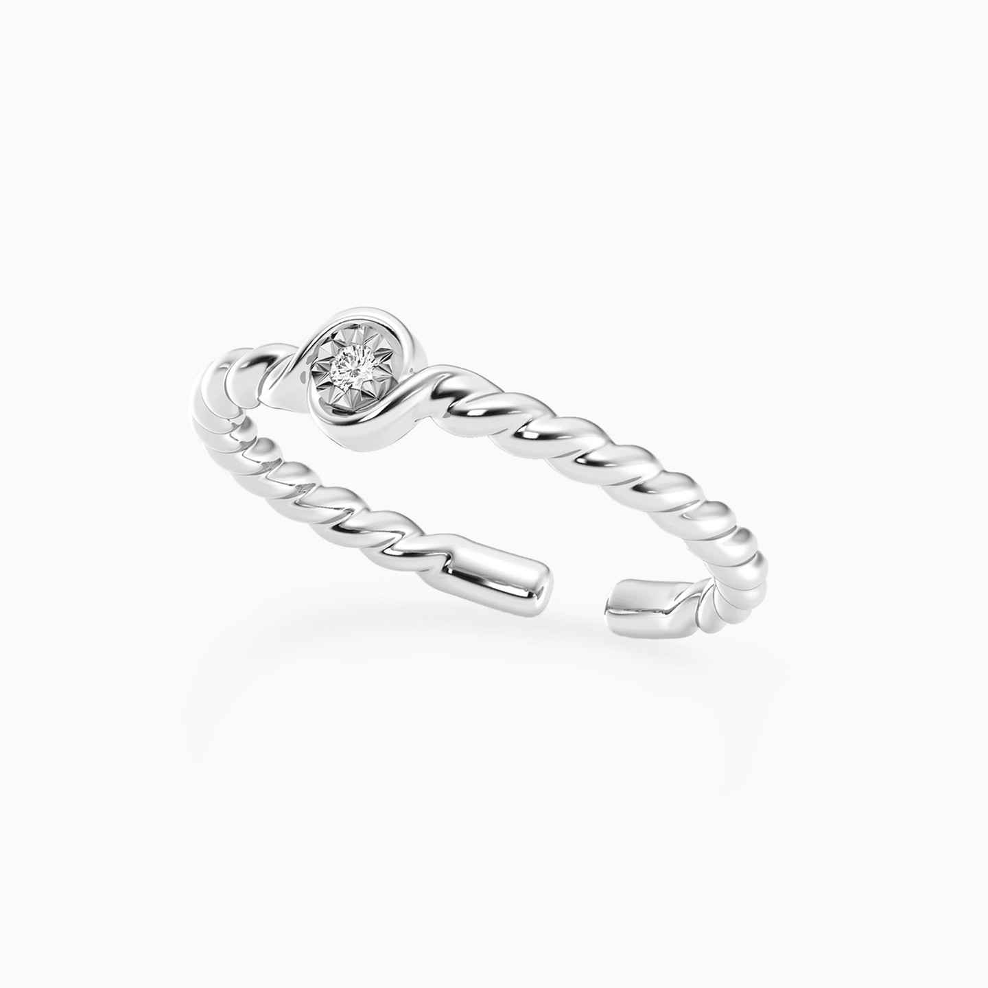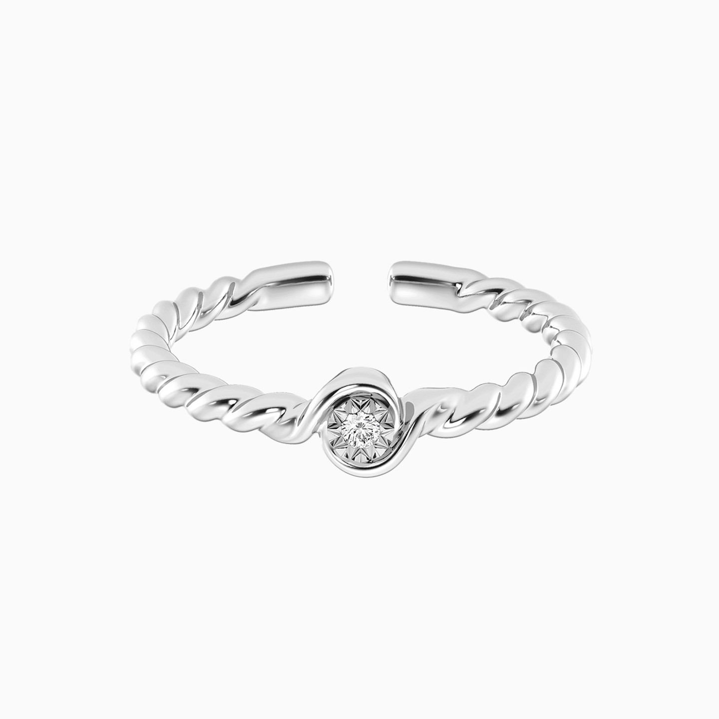 Add a feminine touch to your everyday looks by wearing this graceful ring from Waves. Beautifully crafted in sterling silver, this chic ring has an elegant twisted rope band with a sparkling lab grown diamond at the center. We love how this minimalist ring exudes maximum feminine style.