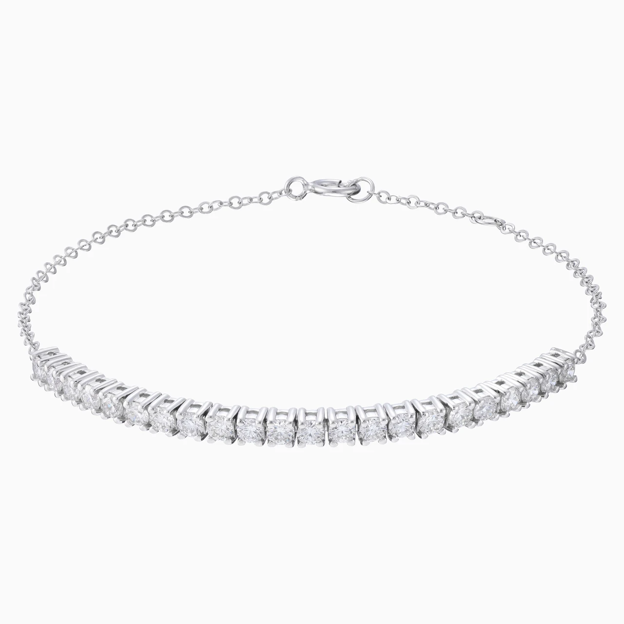 Discover the allure of refined luxury with this 3/4 tennis bracelet from L'azurde Diamonds, beautifully crafted from 18K white gold and adorned with brilliant cut diamonds. The bracelet features a harmonious arrangement of dazzling diamonds, each meticulously cut and set to perfection. The sleek and polished 18K white gold enhances the diamonds' radiance, creating a piece that exudes elegance and sophistication. Ideal for both day and night, this bracelet is a testament to enduring style and beauty.