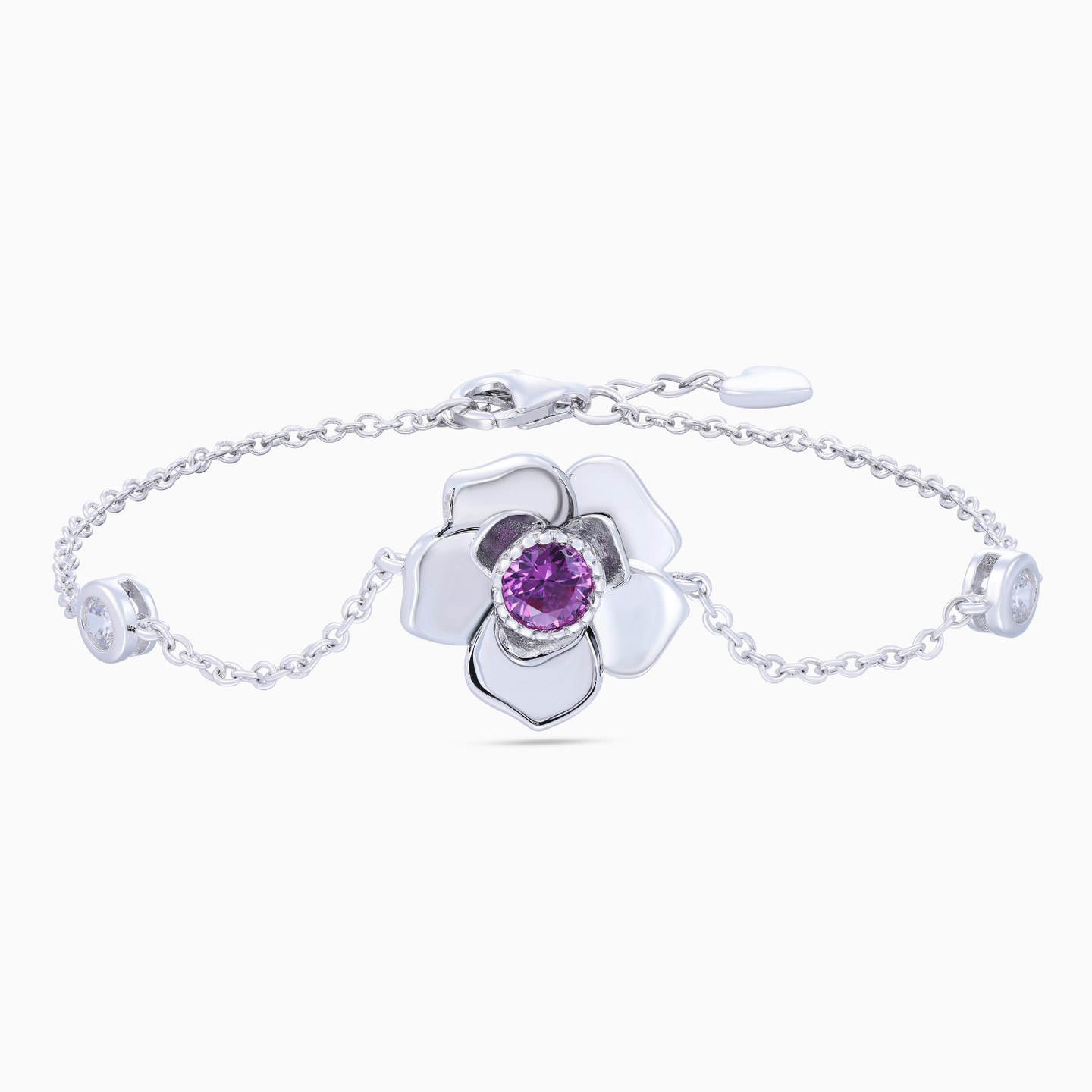 Flower Purple Stone Chain Bracelet In Sterling Silver