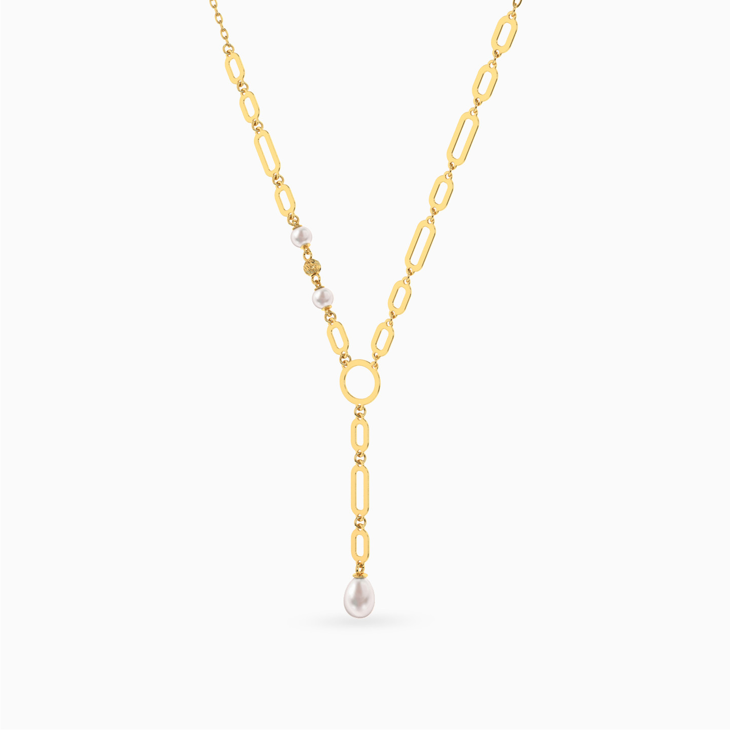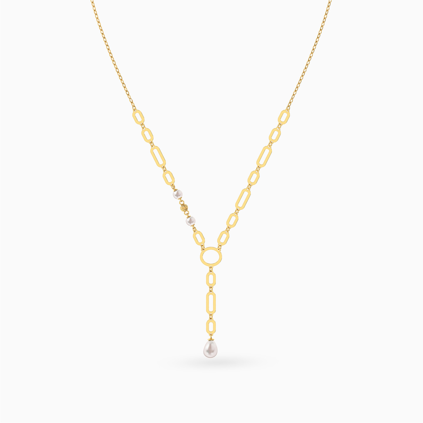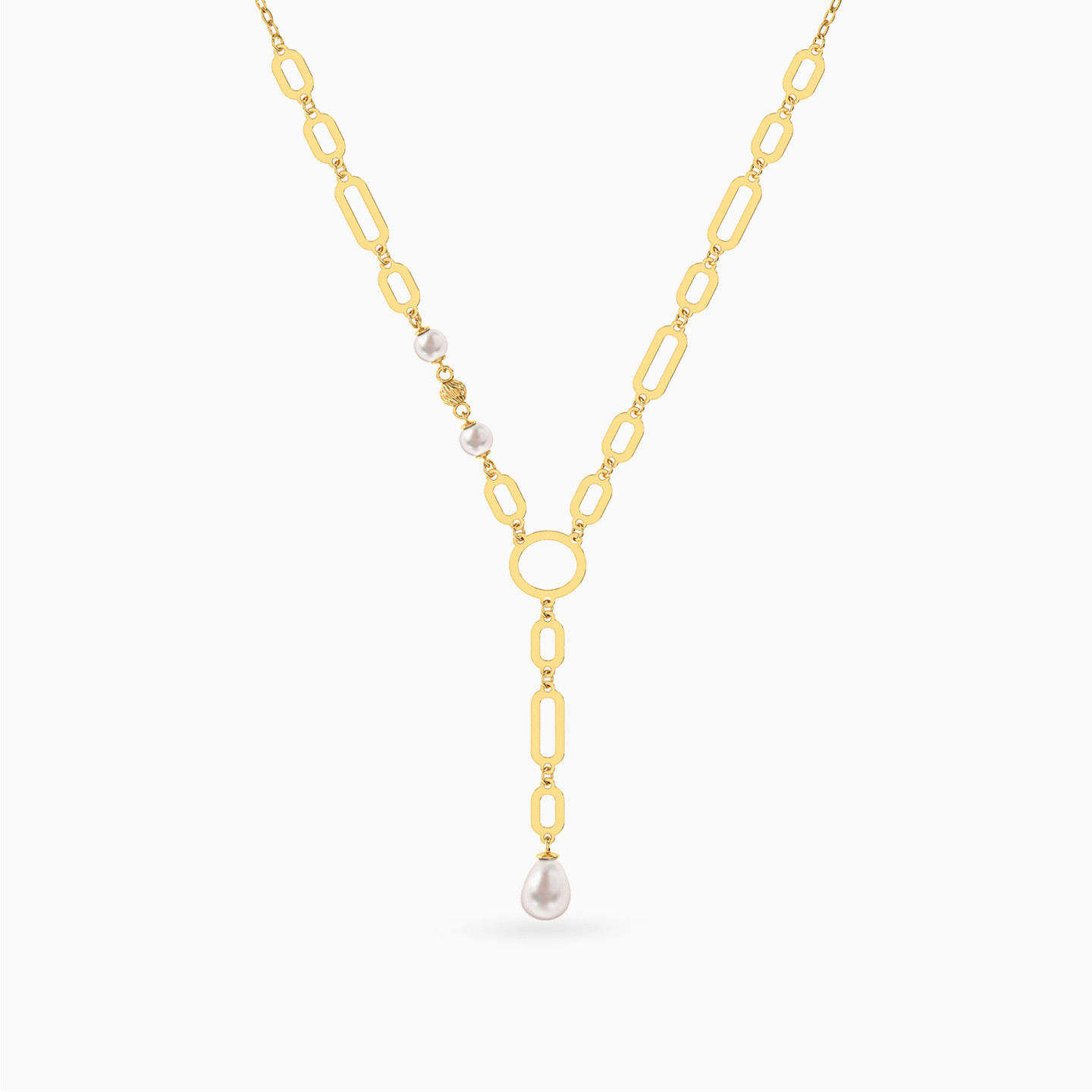 Geometric Chain Pearl Lariat Necklace In 18K Gold