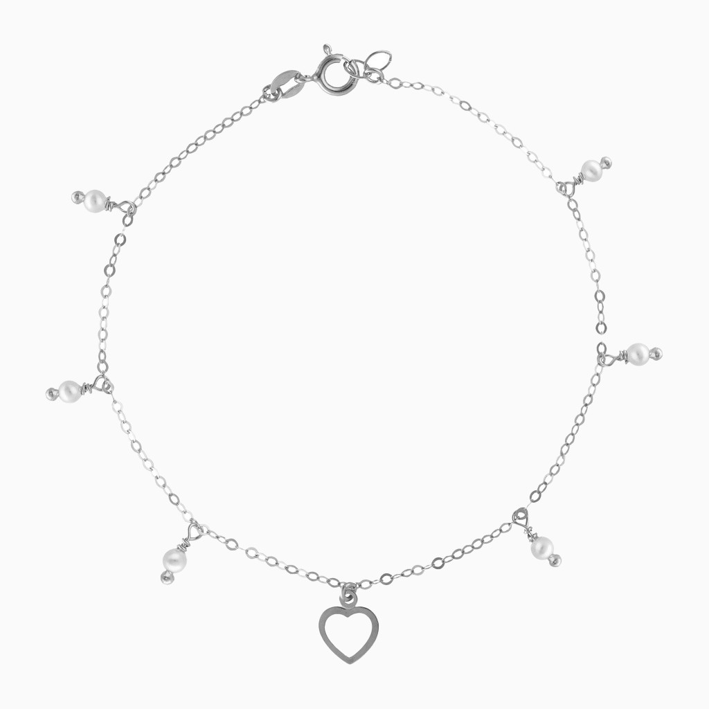 Heart & Pearls Sterling Silver Chain Anklet