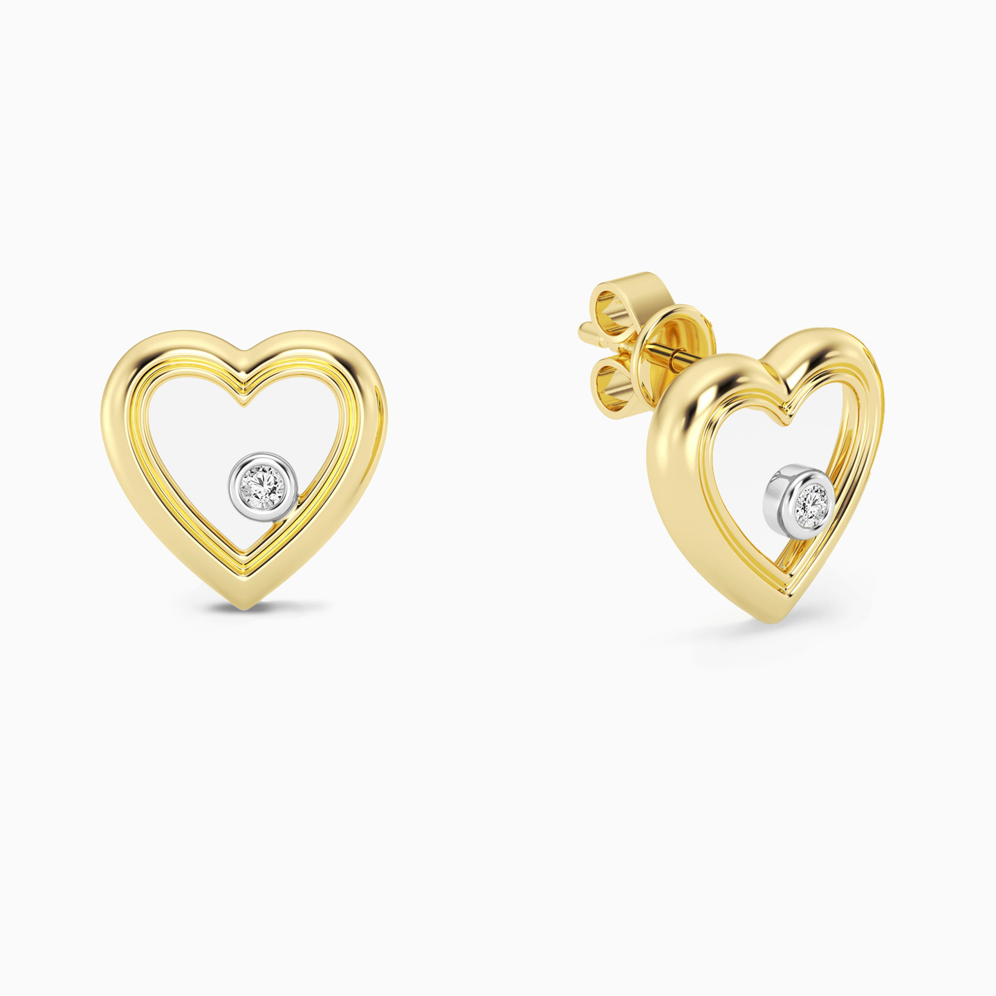 Make a romantic statement by wearing these heart earrings from Waves, or gifting them to someone special. Crafted in gleaming yellow gold plate, these stylish earrings brighten office wear and are perfect for weekend outings. A sleek heart shaped frame features a sparkling lab grown diamond at the center. You'll fall in love with how versatile these earrings are and how easily they elevate any look.