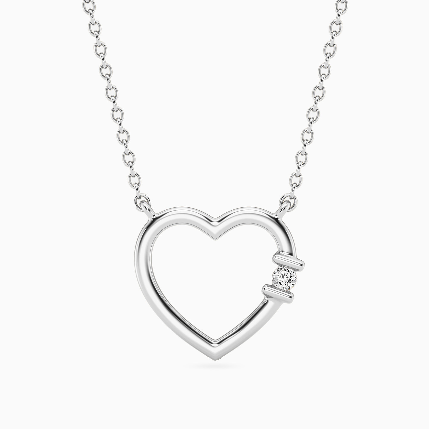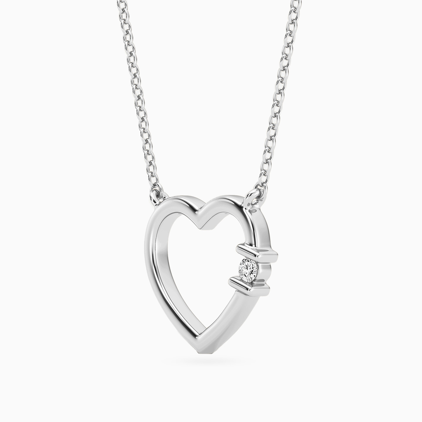 Discover affordable glamour and timeless style with this piece from Waves! This sterling silver necklace exudes modern elegance with an open heart pendant, accented on one side by a sparkling brilliant lab-grown diamond for a subtle yet radiant touch. Perfect for those who adore minimalist designs with a romantic twist, it’s a delicate piece to elevate your everyday style or special moments.