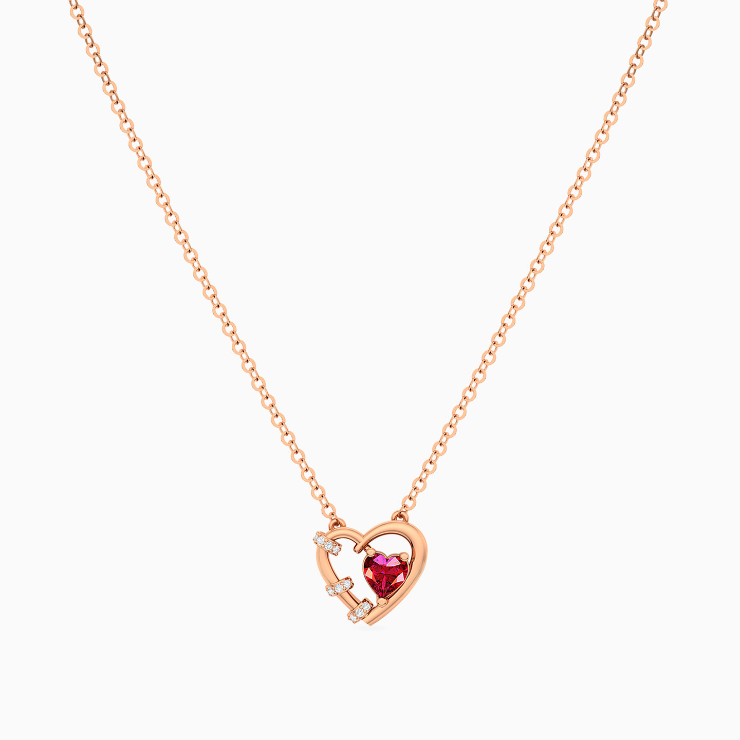 Heart Red Stone & Diamonds Necklace in 18K Gold