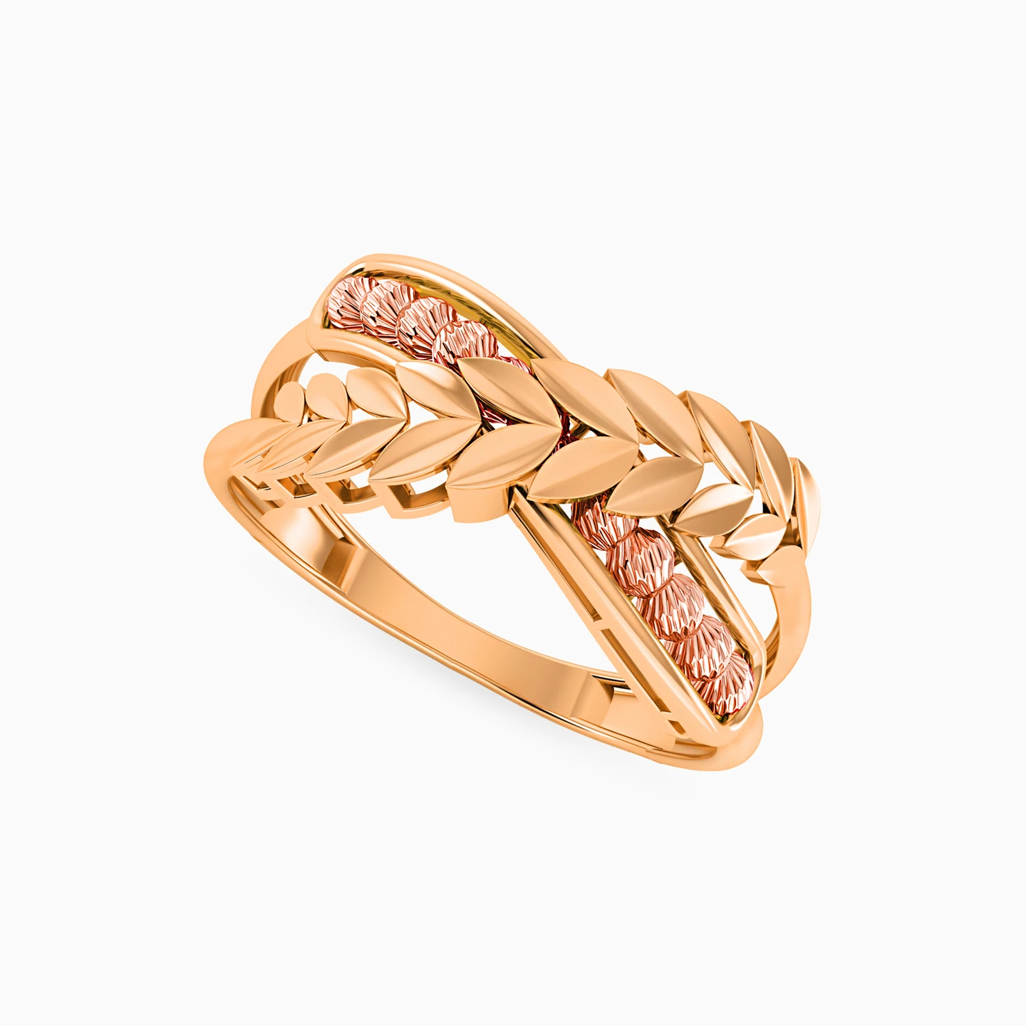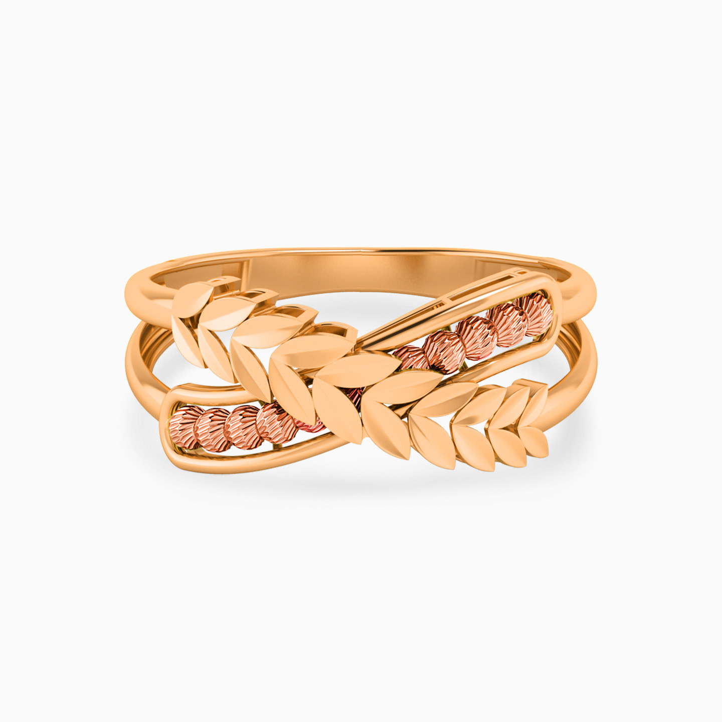 Bringing sophistication with a touch of elegance to your outfit, this ring from L'azurde Gold deserves a special place in your jewelry collection. Cast in 21-karat yellow gold with textured beads along the band crossed over with a leaf ribbon, this piece is luxury personified. A matching bracelet would make the perfect complement with this ring.