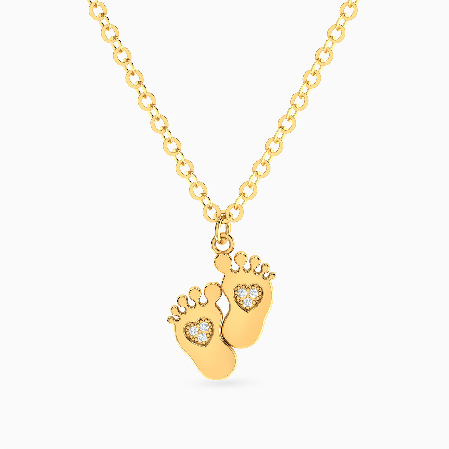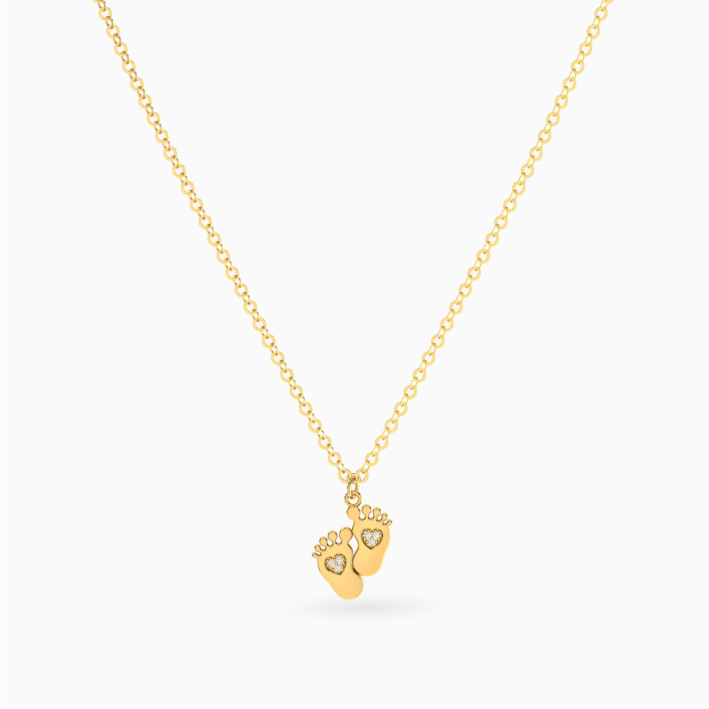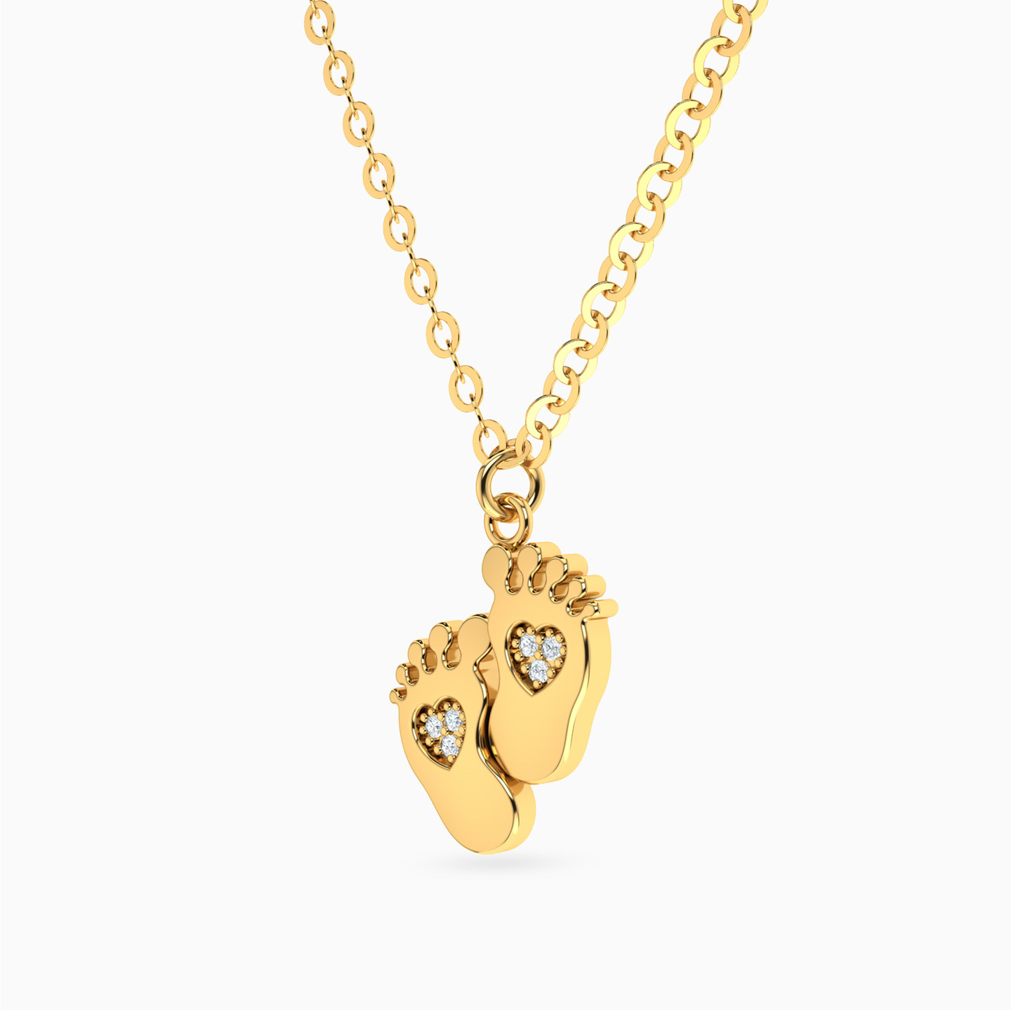 Kids Baby Feet Cubic Zirconia Necklace In 18K Gold
