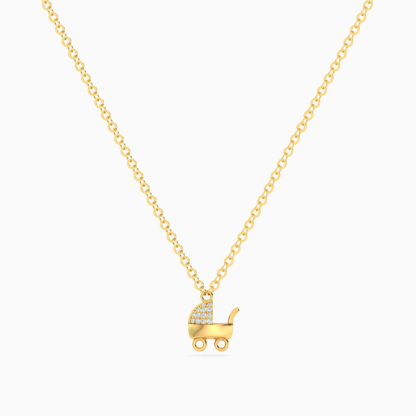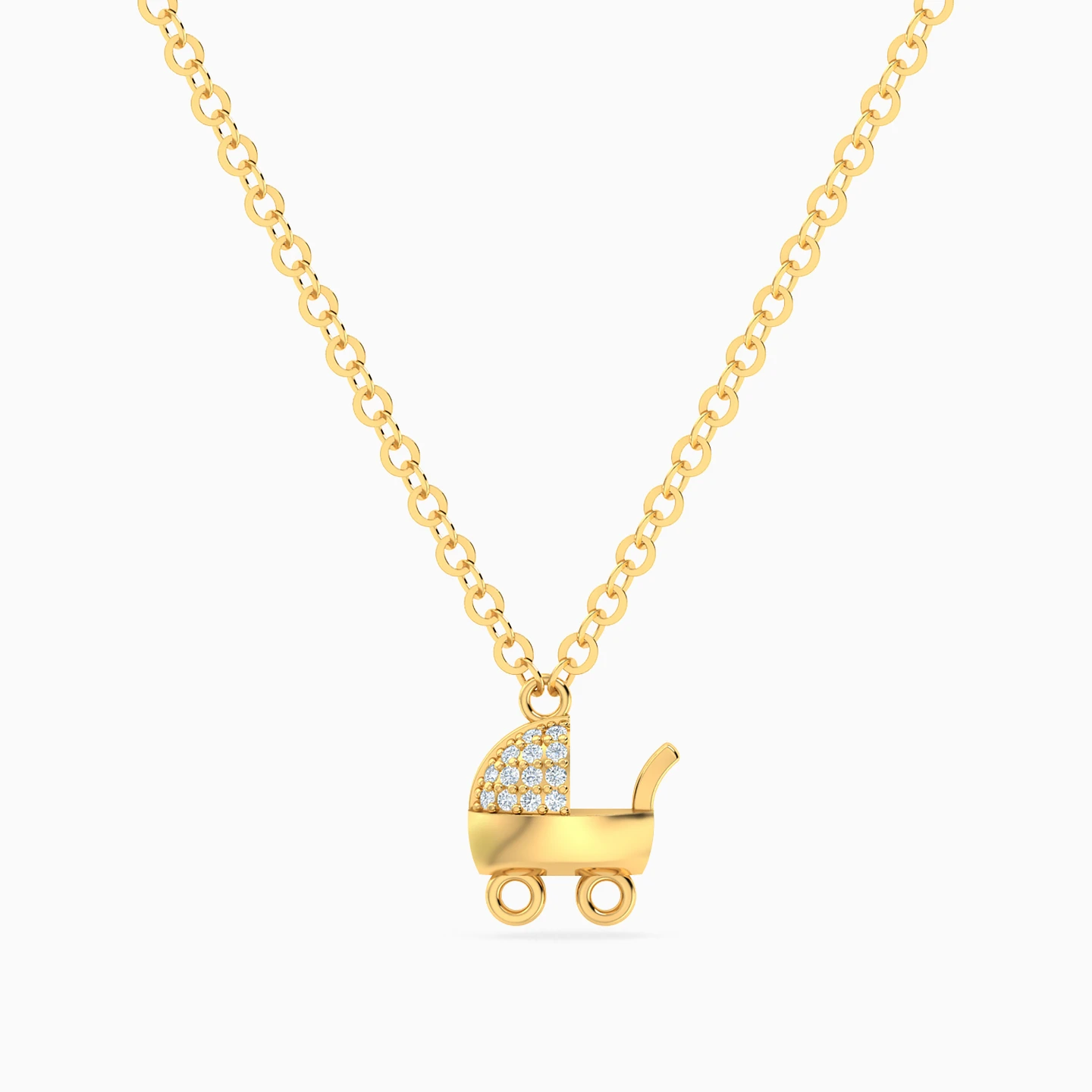Kids Baby Stroller Cubic Zirconia Necklace In 18K Gold