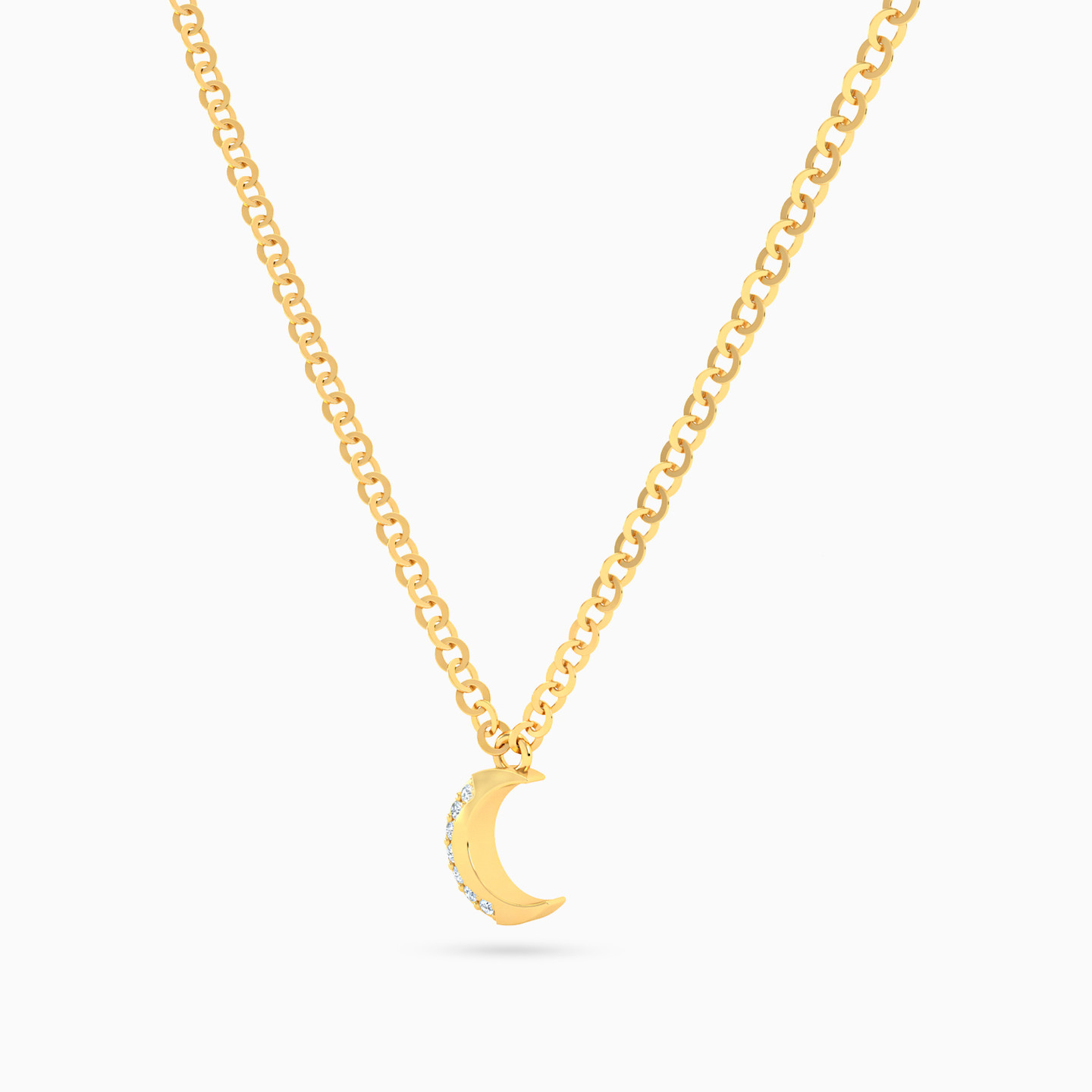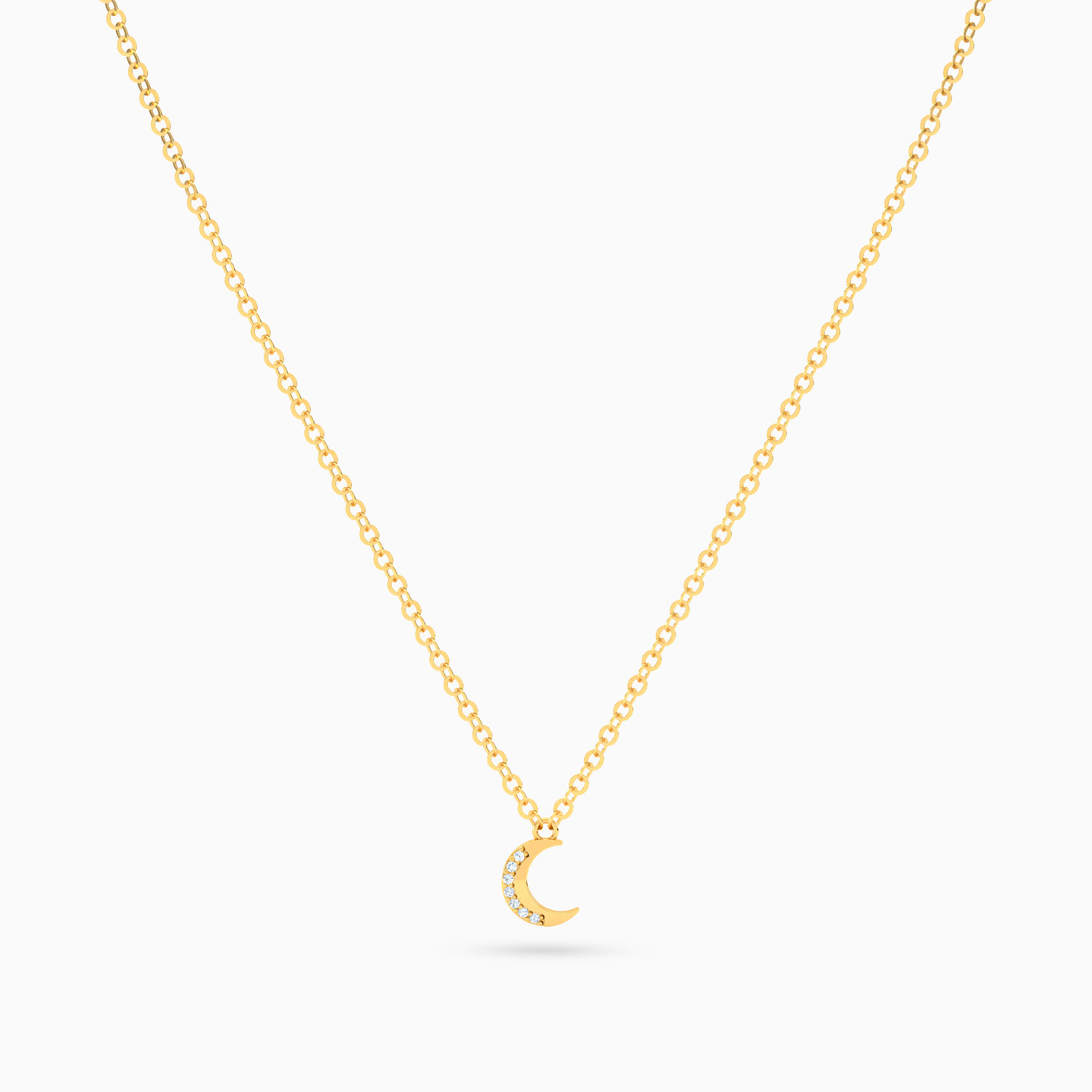 Kids Crescent Cubic Zirconia Necklace In 18K Gold