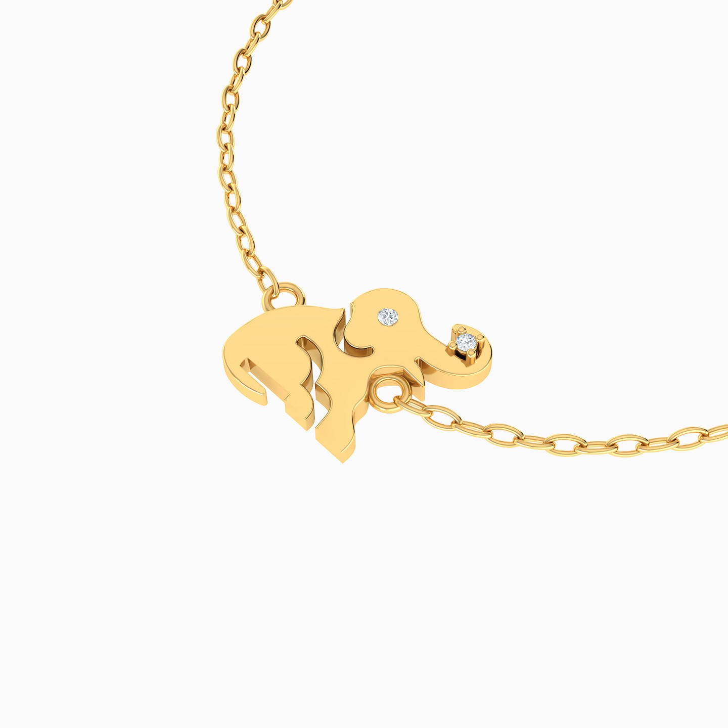 Kids Elephant Cubic Zirconia Chain Bracelet in 18K Gold