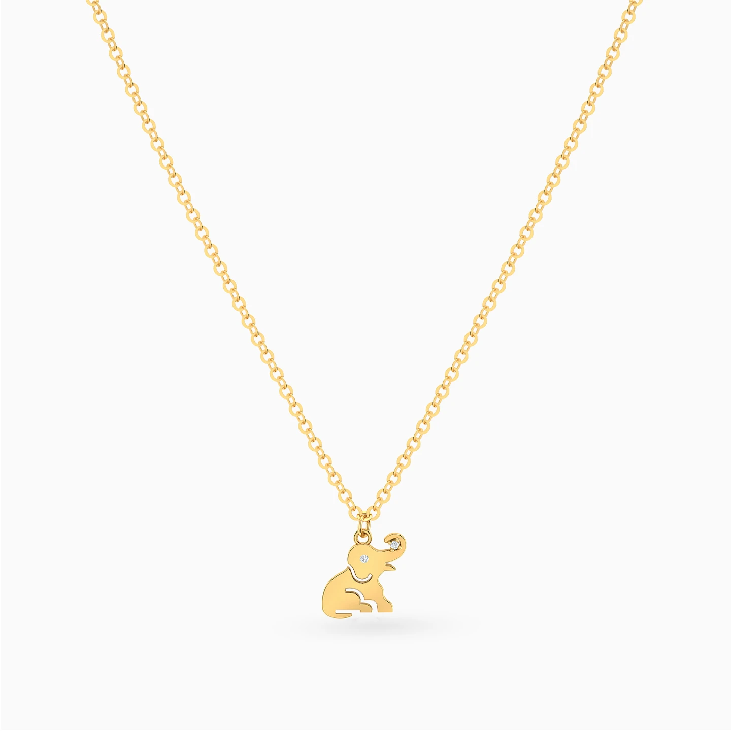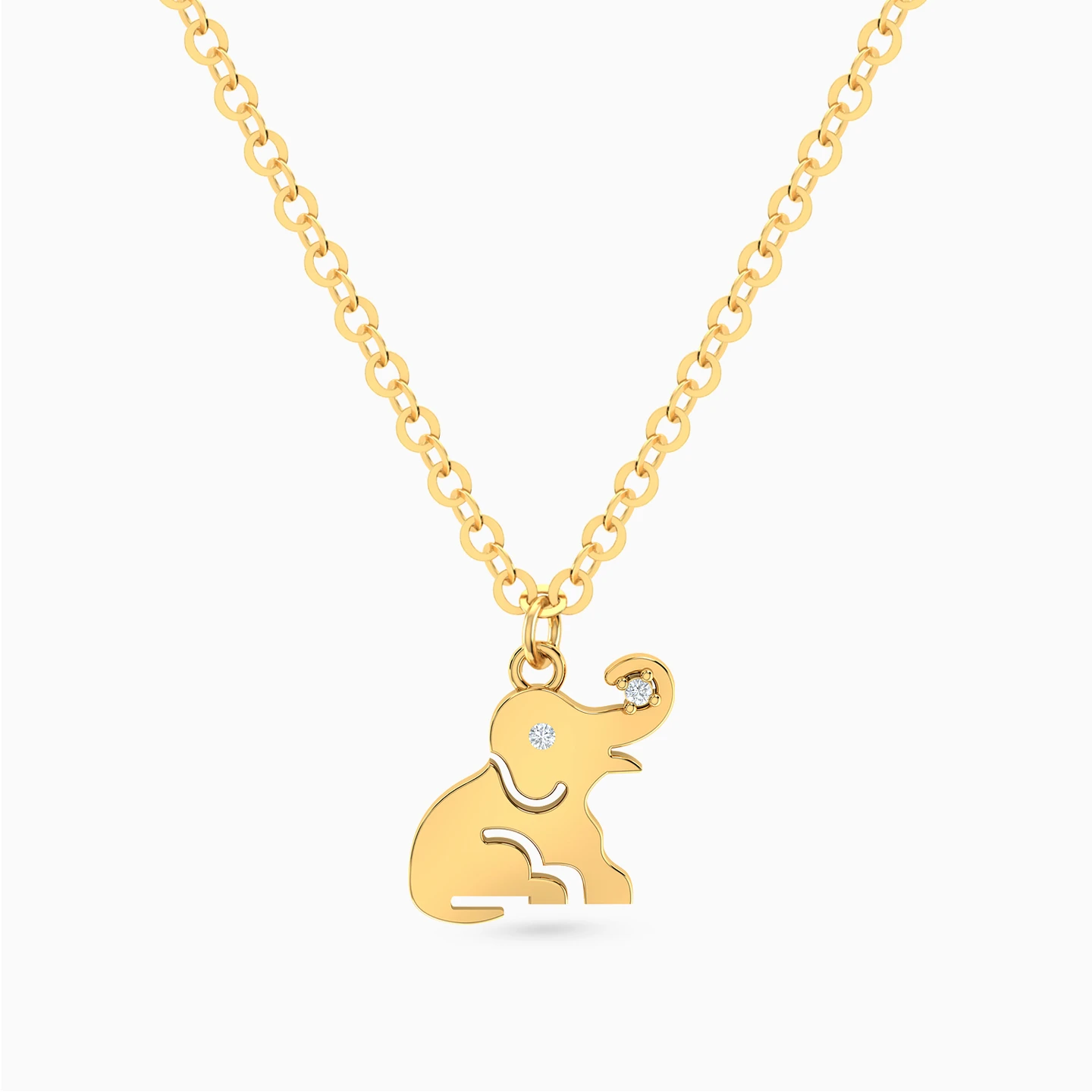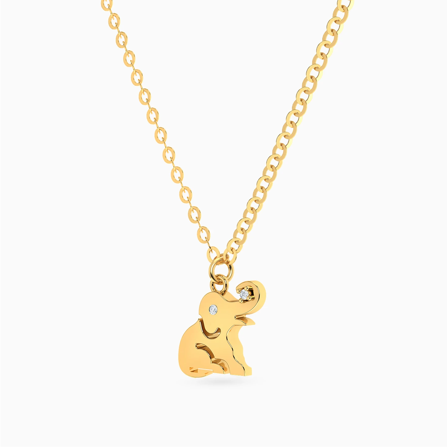 Kids Elephant Cubic Zirconia Necklace In 18K Gold