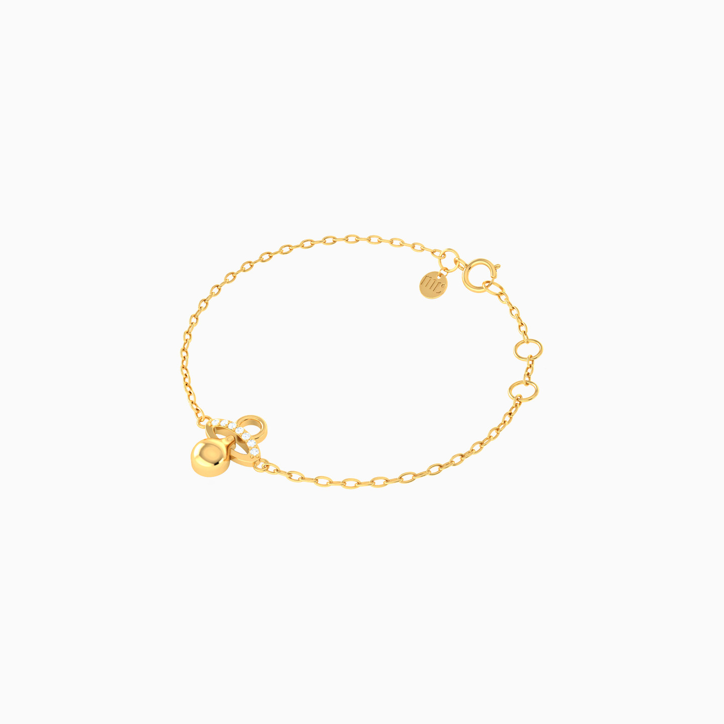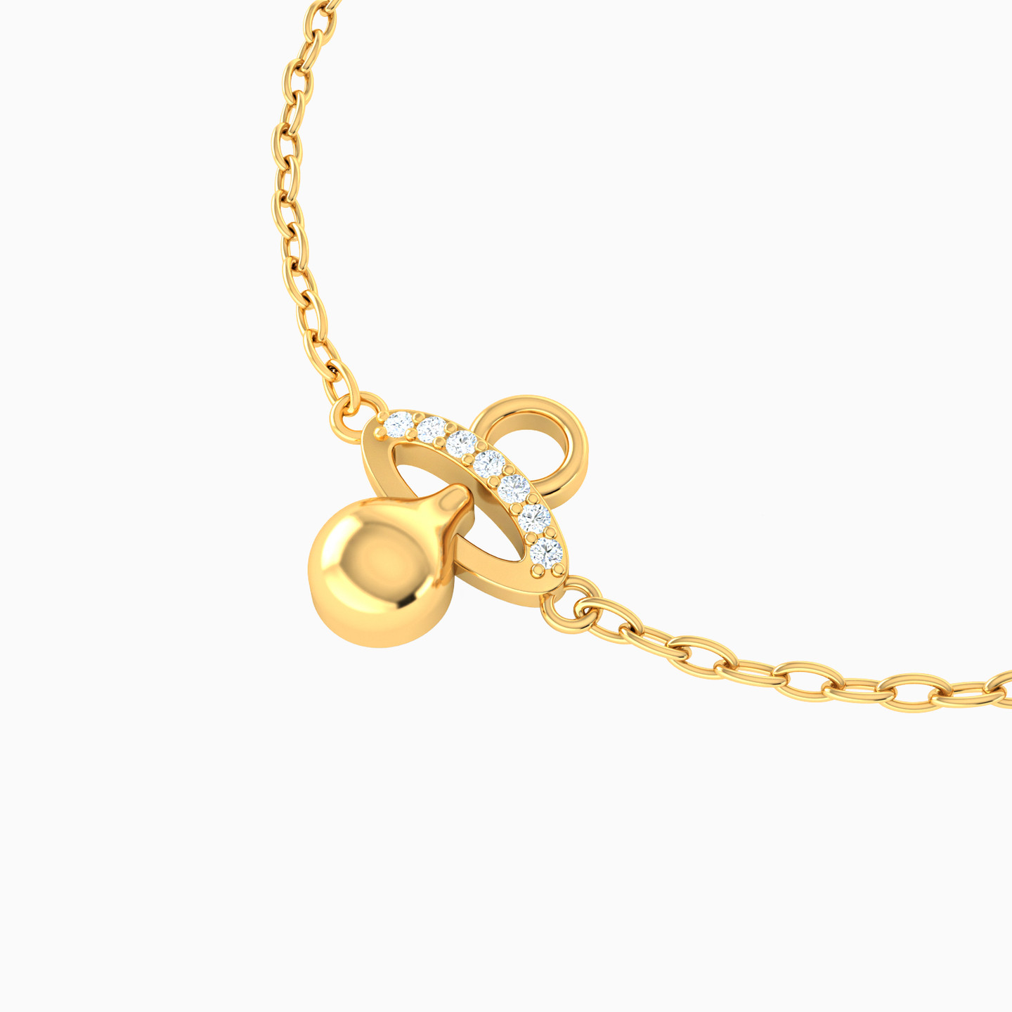 Kids Pacifier Cubic Zirconia Chain Bracelet in 18K Gold