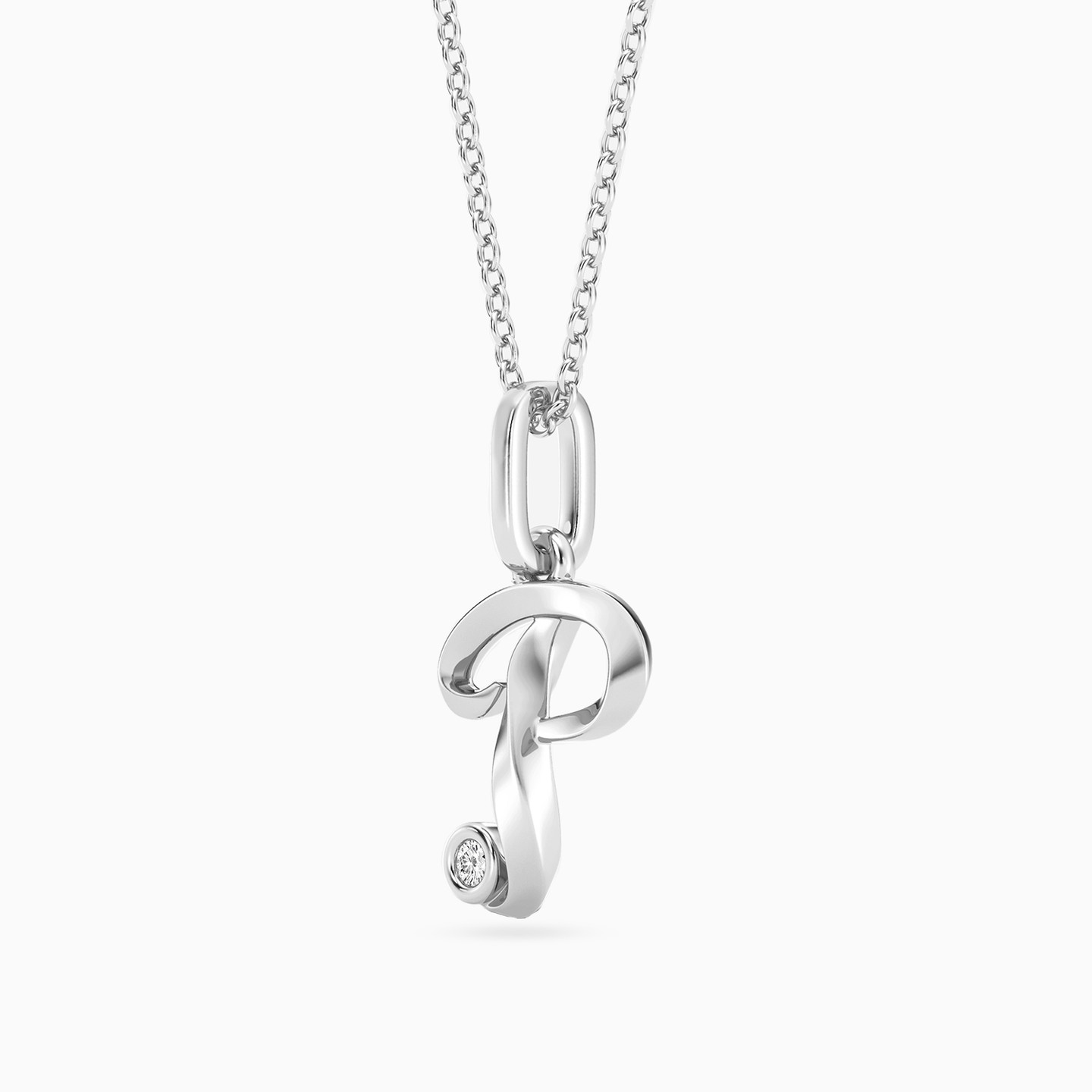 Discover affordable glamour and timeless style with this piece from Waves! This sterling silver necklace features a delicate pendant shaped as the elegant letter “P” suspended gracefully along a fine chain, and accented with a shimmering lab-grown diamond for a touch of modern sparkle. Perfect for those who adore personalized jewelry and refined elegance, it’s a beautiful way to carry a piece of your identity close to your heart.