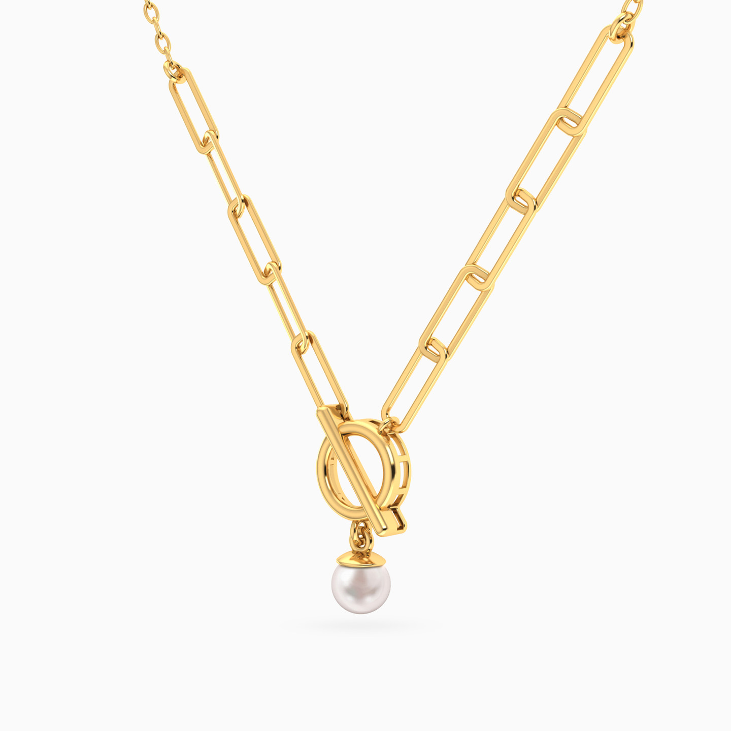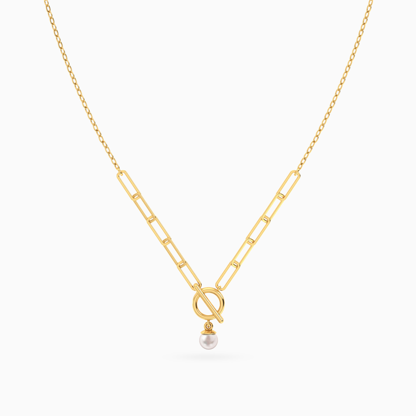 Modern charm with a classic twist. This Miss L’ necklace combines a bold paperclip chain with a round toggle clasp and a single pearl drop—balancing edge and elegance in perfect harmony. A statement piece for those who love contemporary flair with a timeless finish.