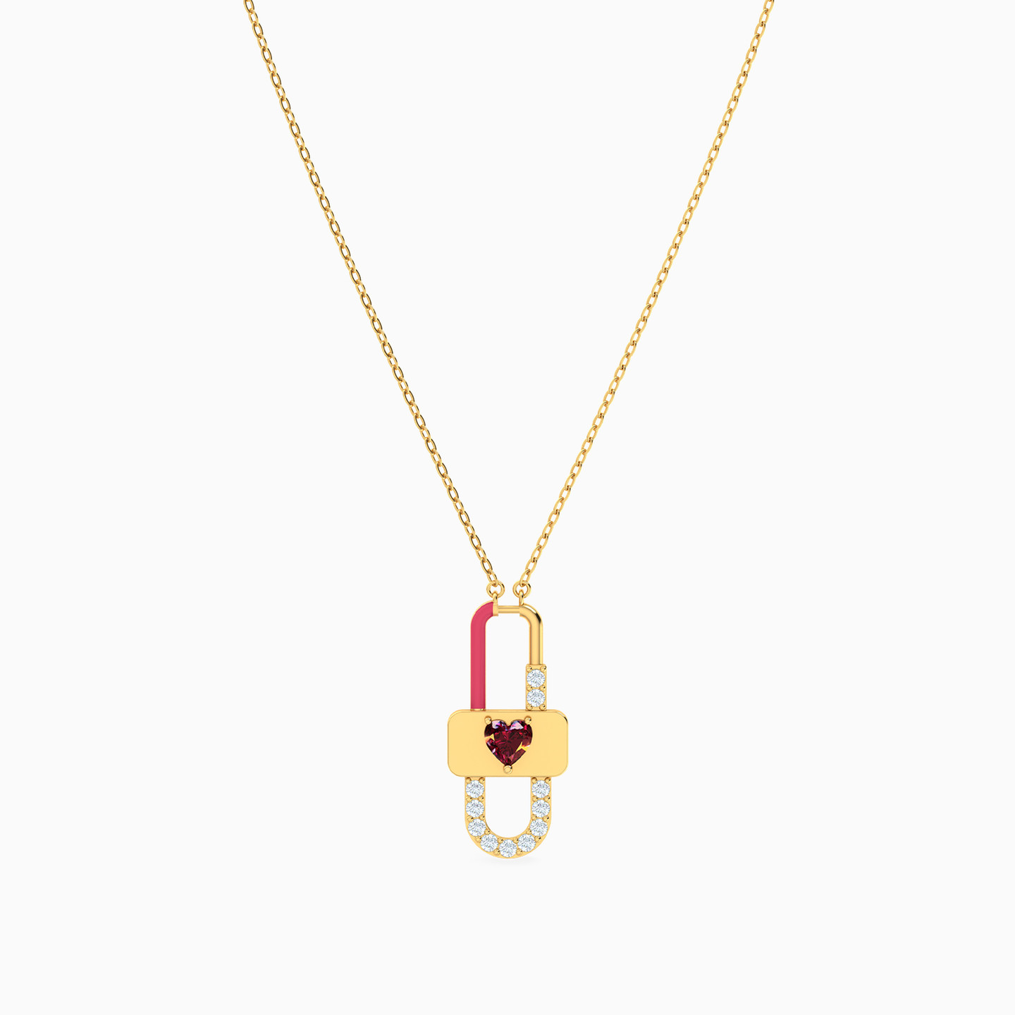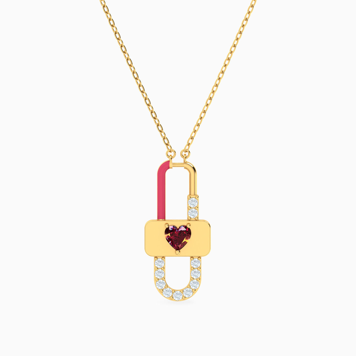 Lock Red Stone & Enamel Coated Necklace in 18K Gold