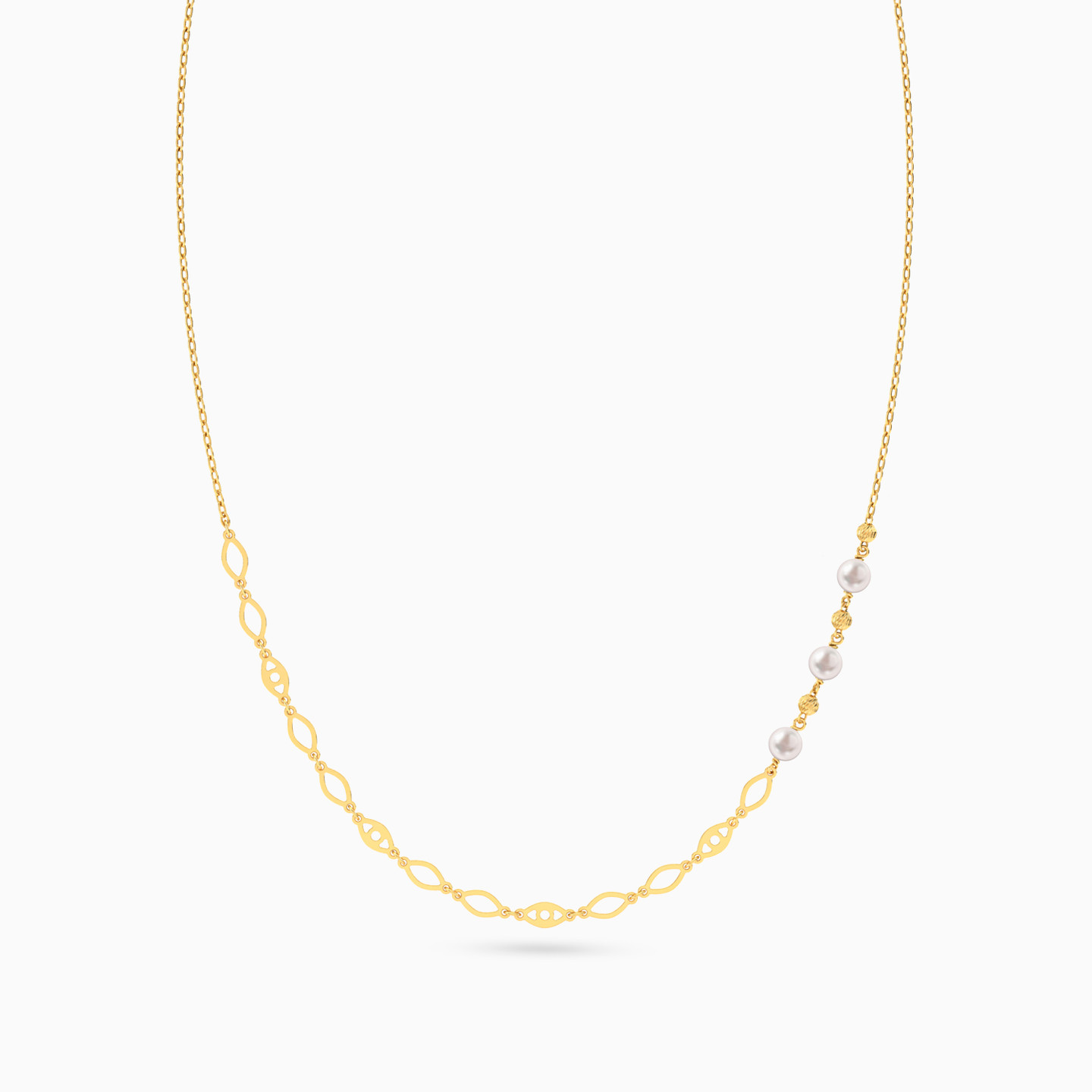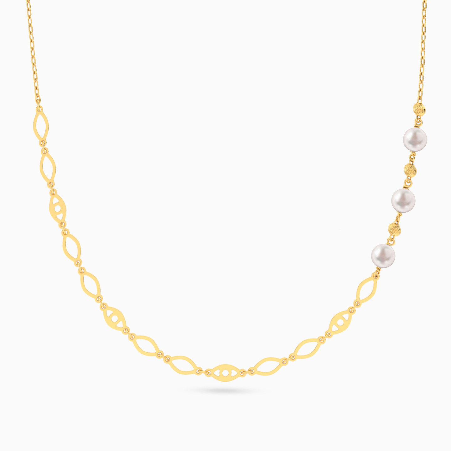 Marquise & Eyes Pearl Necklace In 18K Gold