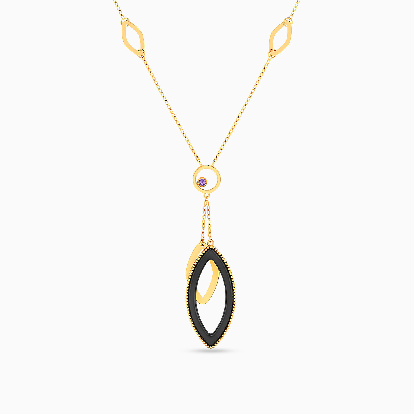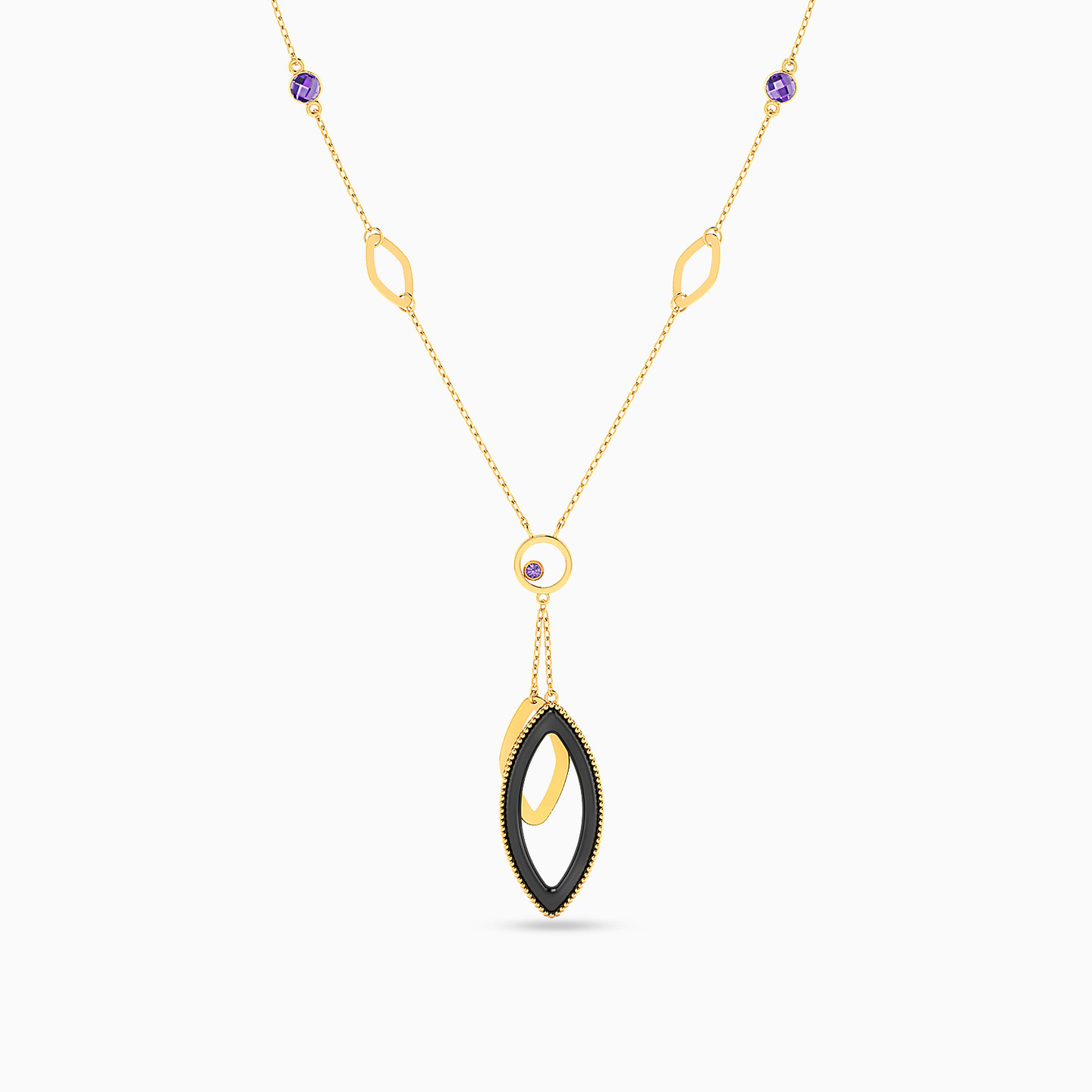 Smart enough to up your day to evening look, this necklace from L'azurde Instyle is a piece of desire. The marquise shaped drop charms accented with black stone and the petite elements on the chain give this number a distinct look. We love how 18-karat yellow gold ties them all together in one perfect piece.
